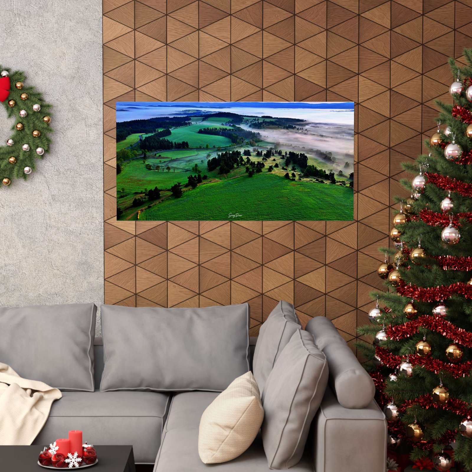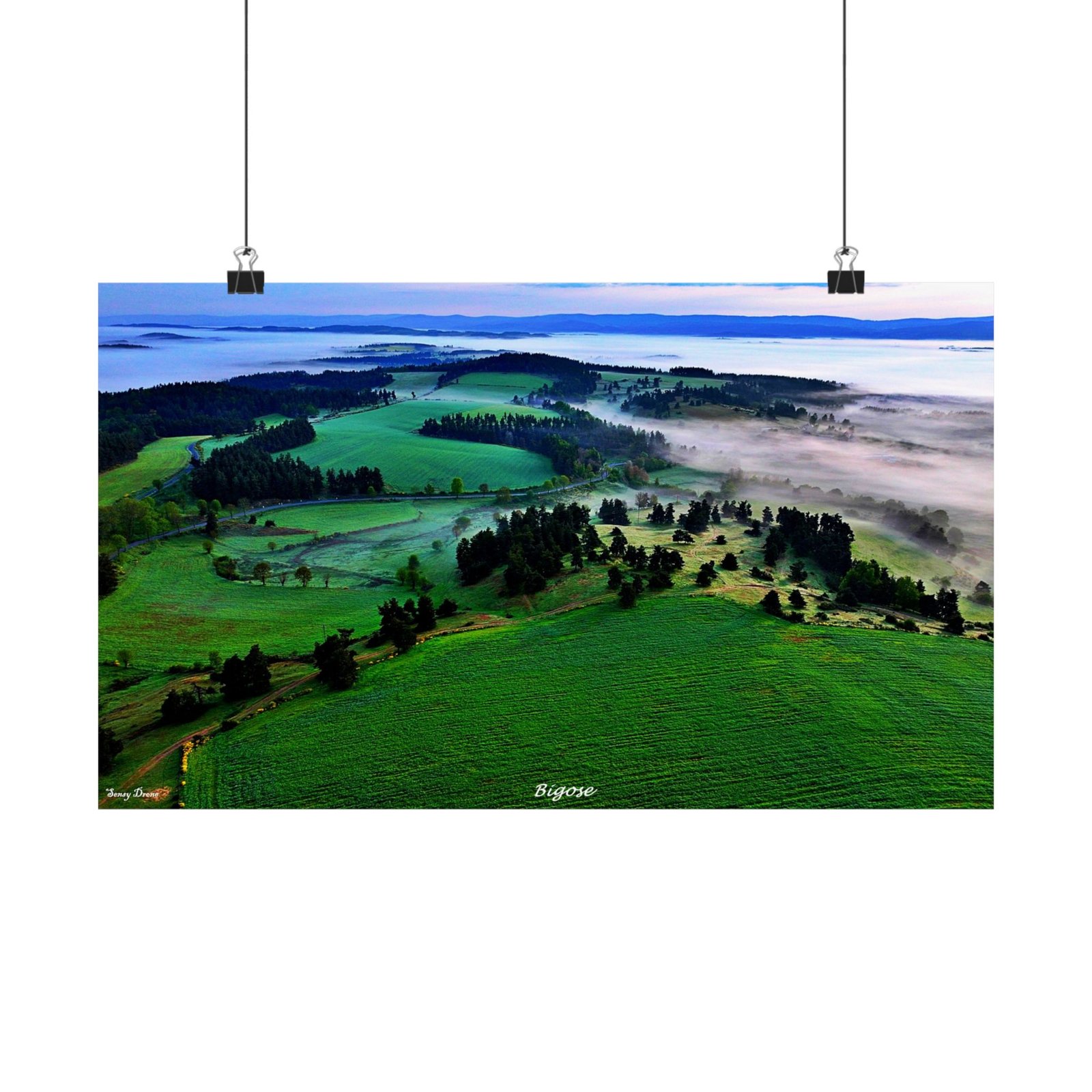 Bigose… là où la lumière rencontre la brume, et où le Chemin s’épanouit.Réveillez-vous face à des collines verdoyantes et une brume matinale légère, immortalisées dans une impression de qualité muséale. Cette affiche horizontale mate apporte une touche de calme et d’immensité à votre intérieur : une douce brise champêtre qui, accrochée à plat au mur, invite le regard à travers les champs en terrasses et le brouillard lointain. Les couleurs restent éclatantes grâce à l’impression giclée d’archivage sur papier de qualité musée, tandis que la finition mate absorbe la lumière et minimise les reflets, pour une vue magnifique sous tous les angles. Disponible en plusieurs formats, pour s’adapter à un coin cosy ou à un grand mur, cette affiche convient aux maisons et studios qui apprécient les paysages subtils et intemporels et la qualité durable.