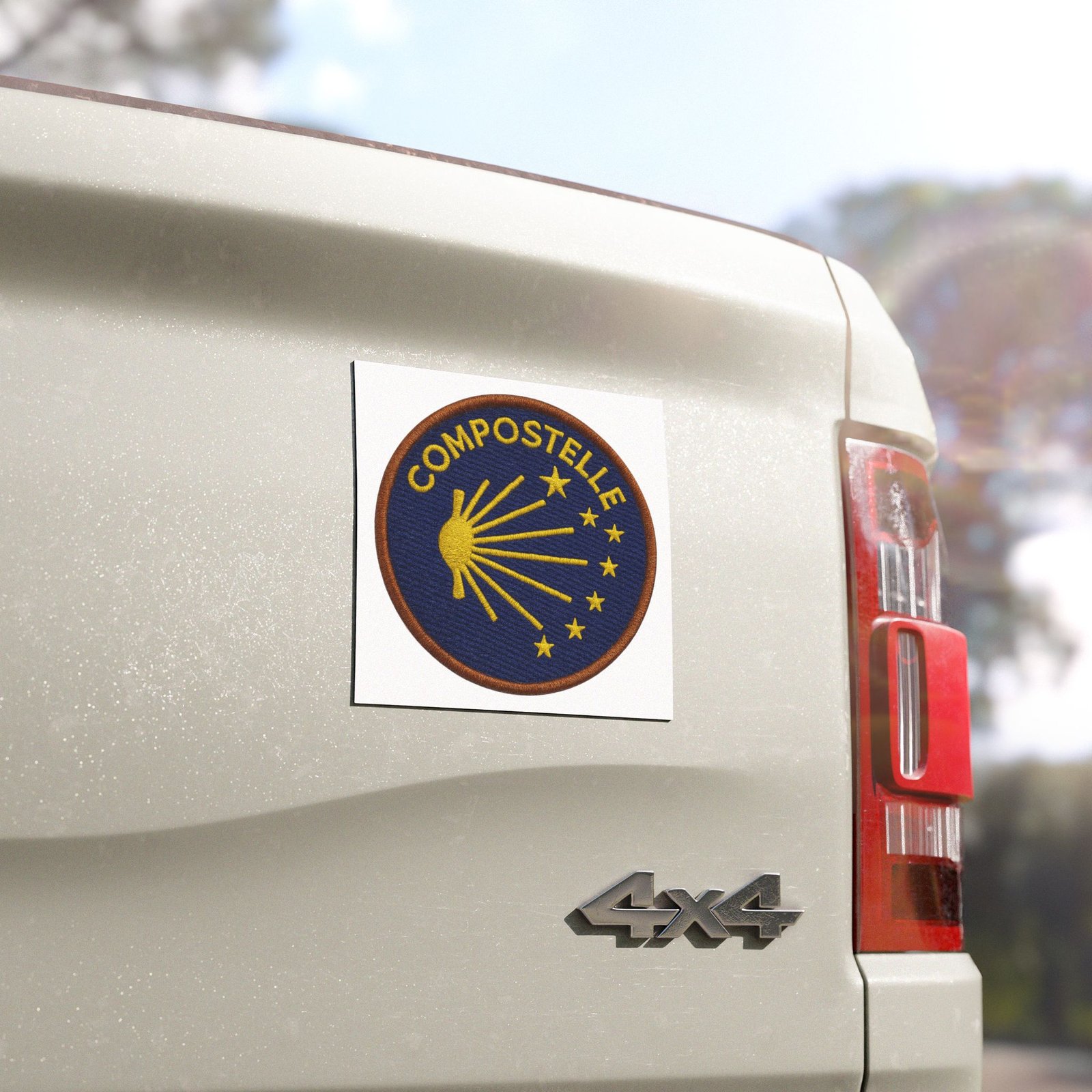 Cet aimant de voiture Compostelle arbore la célèbre coquille de Saint-Jacques, symbole du chemin et des voyageurs de l’âme.