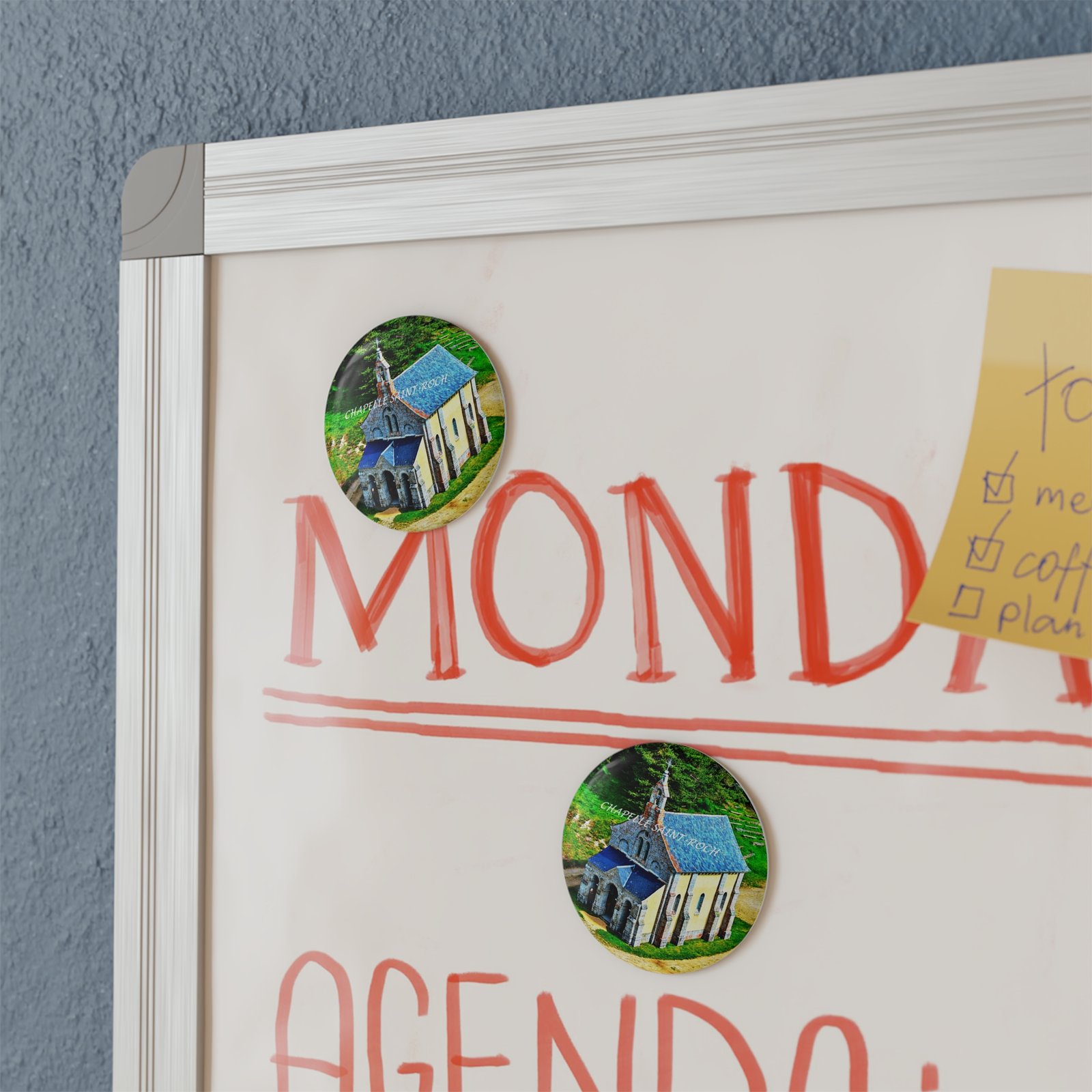 A small round magnet that carries a slice of place and memory—bright, detailed artwork sealed beneath a clear mylar/UV coating. It sticks securely to any magnetic surface with a flat backing and holds its color through fridge life and travel. Choose a single keepsake or a set of ten to share with friends, family, or guests who appreciate local landmarks and vivid, long-lasting prints.