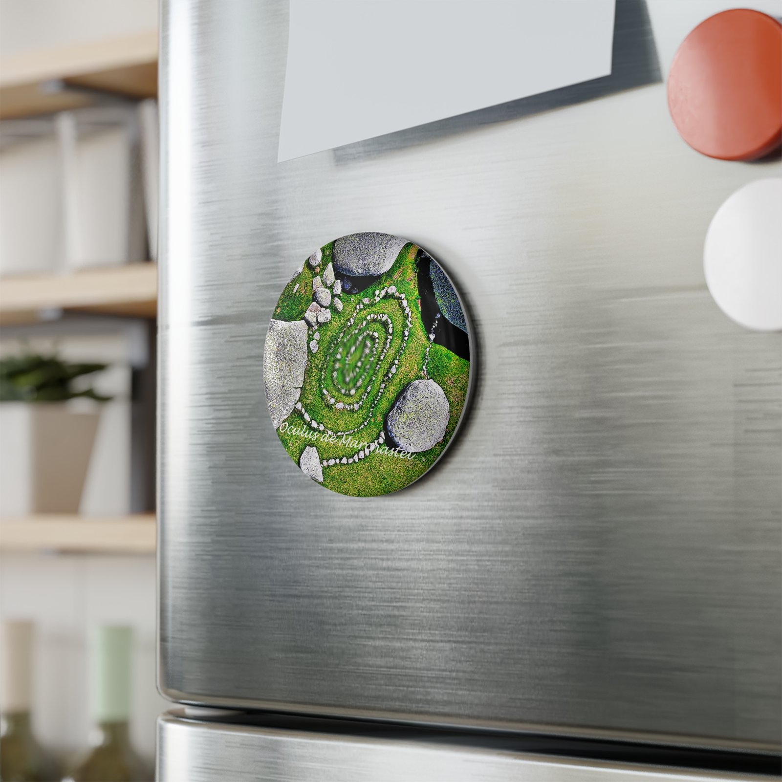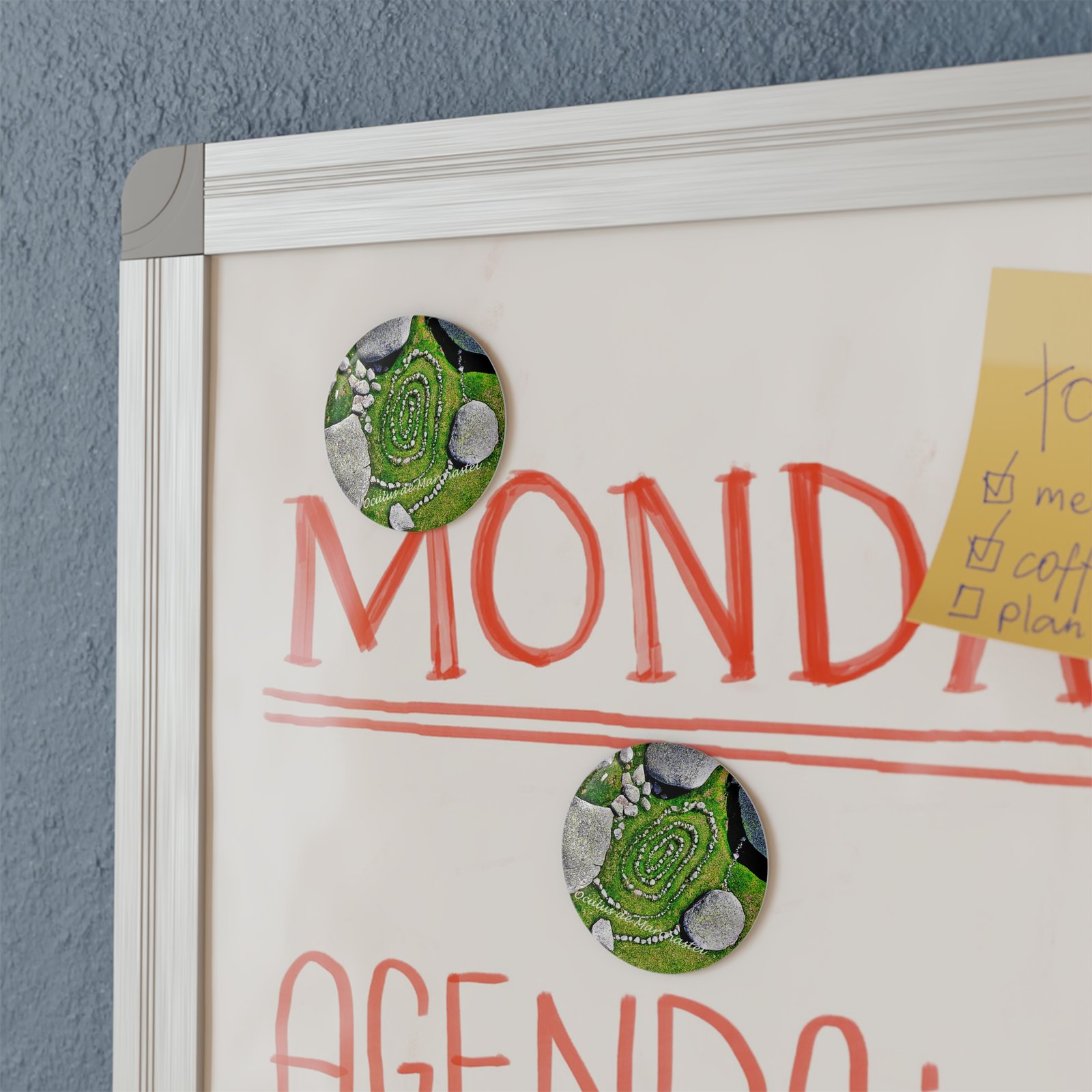 Small, round magnets that carry a slice of landscape art to your fridge, locker, or metal board. The vivid print captures fine detail and contrast, sealed beneath a clear mylar/UV layer that keeps colors bright and guards against scratches. The slim metal shell and flat magnetic backing sit flush against surfaces, so the image stays visible while the magnet holds notes, photos, or small keepsakes. Choose a single piece to try the design or a set of ten to spread the artwork through your home or workspace.