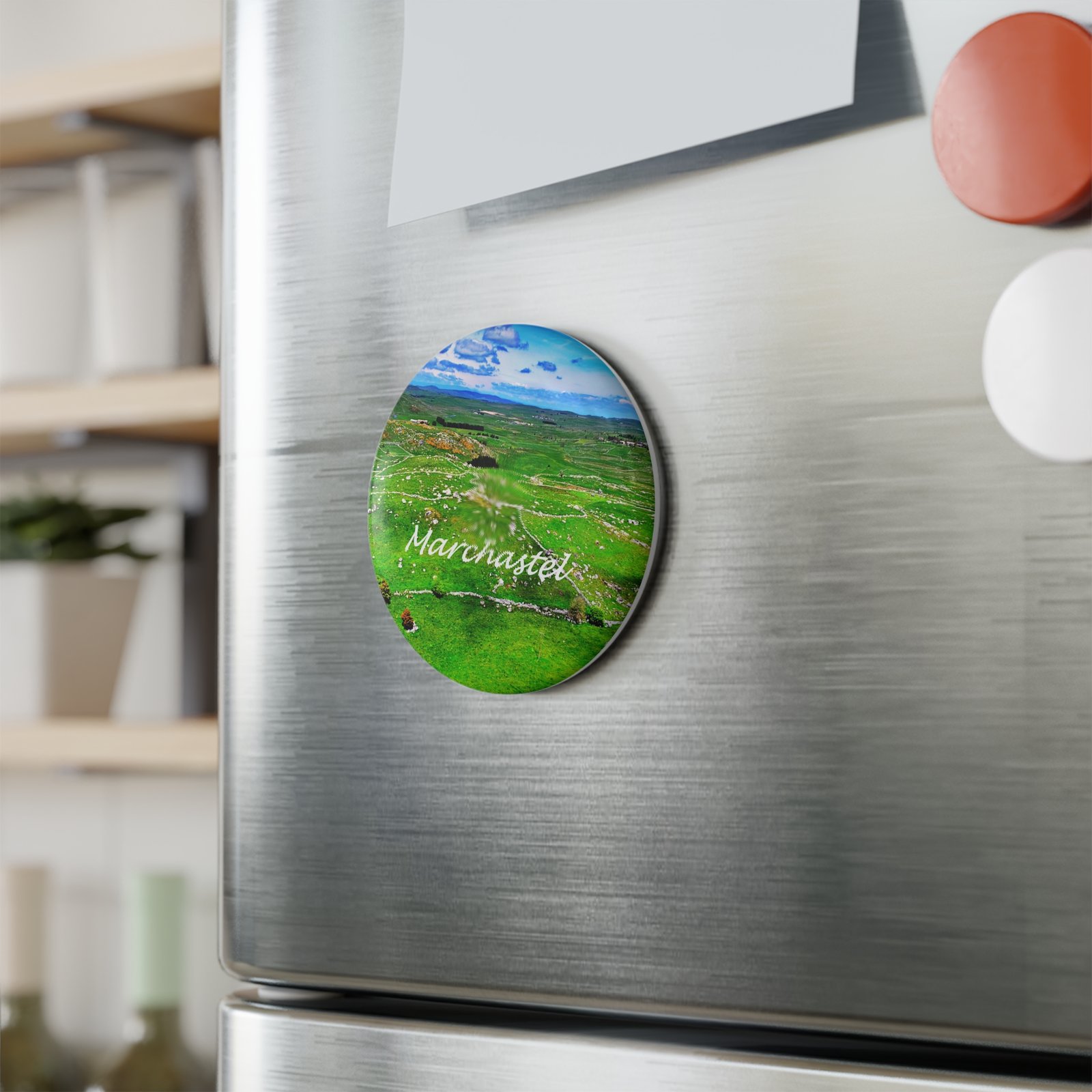 Cet aimant décoratif rond capture cette sensation d’espace et de calme. Un fragment d’Aubrac à portée de main, pour se souvenir que l’essentiel tient parfois dans une ligne d’horizon et quelques pierres posées là depuis toujours.