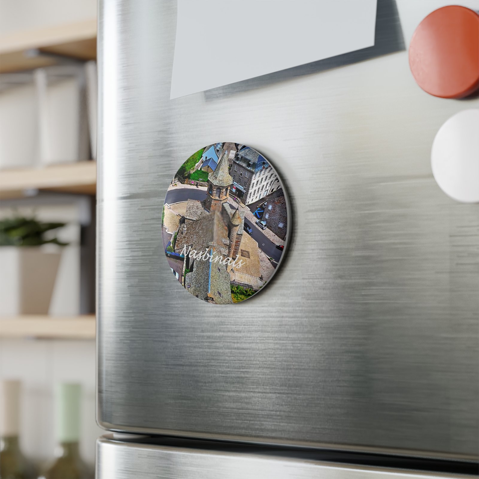 Cet aimant décoratif rond est un souvenir fidèle et chaleureux, pour les pèlerins, les amoureux de l’Aubrac et celles et ceux qui savent que certains villages laissent une trace durable, bien après le passage.