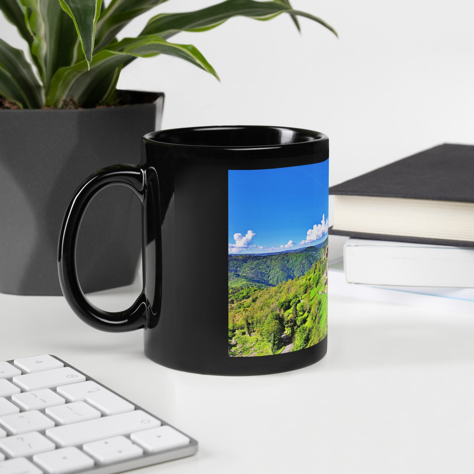 Solide et raffiné en noir brillant, ce mug est indispensable pour le café du matin ou le thé de l’après-midi. Par défaut, la zone d’impression du mug est blanche, mais lorsque vous téléchargez un fichier d’impression, vous n’avez pas à remplir vous-même le fond en noir. Envoyez vos créations avec des arrière-plans transparents, et nous y ajouterons un fond noir lors de l’impression. Céramique. Dimensions du mug de 325 ml : 9,8 cm x 8,5 cm (3,85 « x 3,35 « ). Dimensions du mug de 443 ml : 12 cm × 8,5 cm (4,7 « × 3,35 « ). Matériaux sans BPA et sans plomb. Passe au lave-vaisselle et au micro-ondes. Produit vierge provenant de Chine. Notez qu’il y aura une légère différence de teinte entre la couleur noire de la tasse elle-même et l’arrière-plan noir par défaut du fichier d’impression. Ce produit est fabriqué à la demande. Pas de quantité minimum.