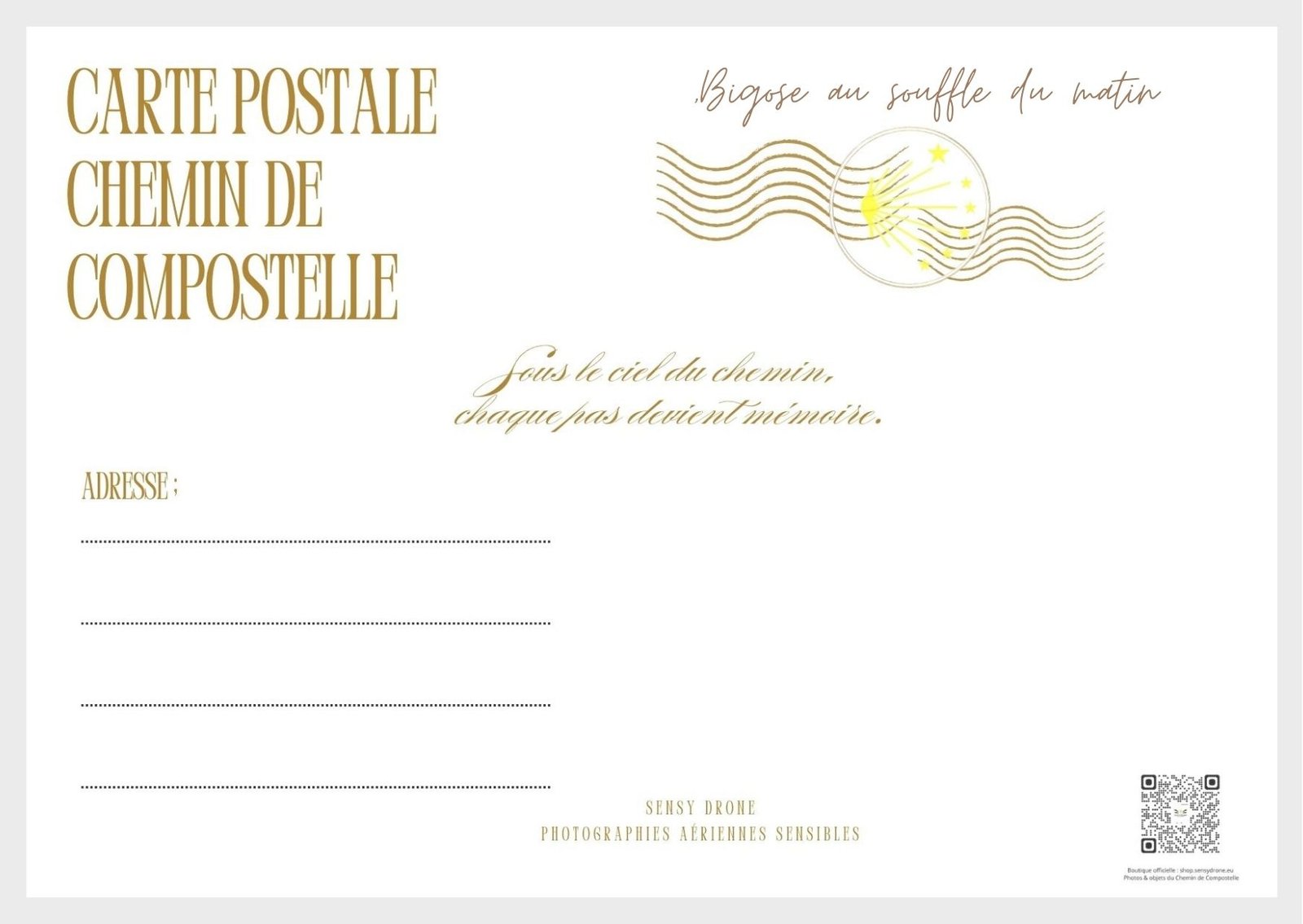 où le jour naît doucement, au rythme du pèlerin. Ces cartes postales sont faites à partir de papier épais mat de haute qualité et constituent un ajout excellent à un cadeau ou une simple note écrite à un ami.