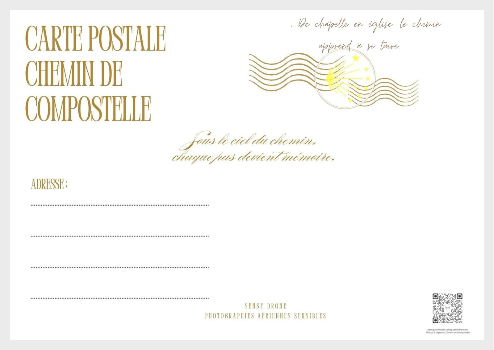 Une photographie aérienne sensible, comme un inventaire poétique de ces haltes spirituelles qui jalonnent la route et façonnent l’âme du voyage. Ces cartes postales sont faites à partir de papier épais mat de haute qualité et constituent un ajout excellent à un cadeau ou une simple note écrite à un ami.
