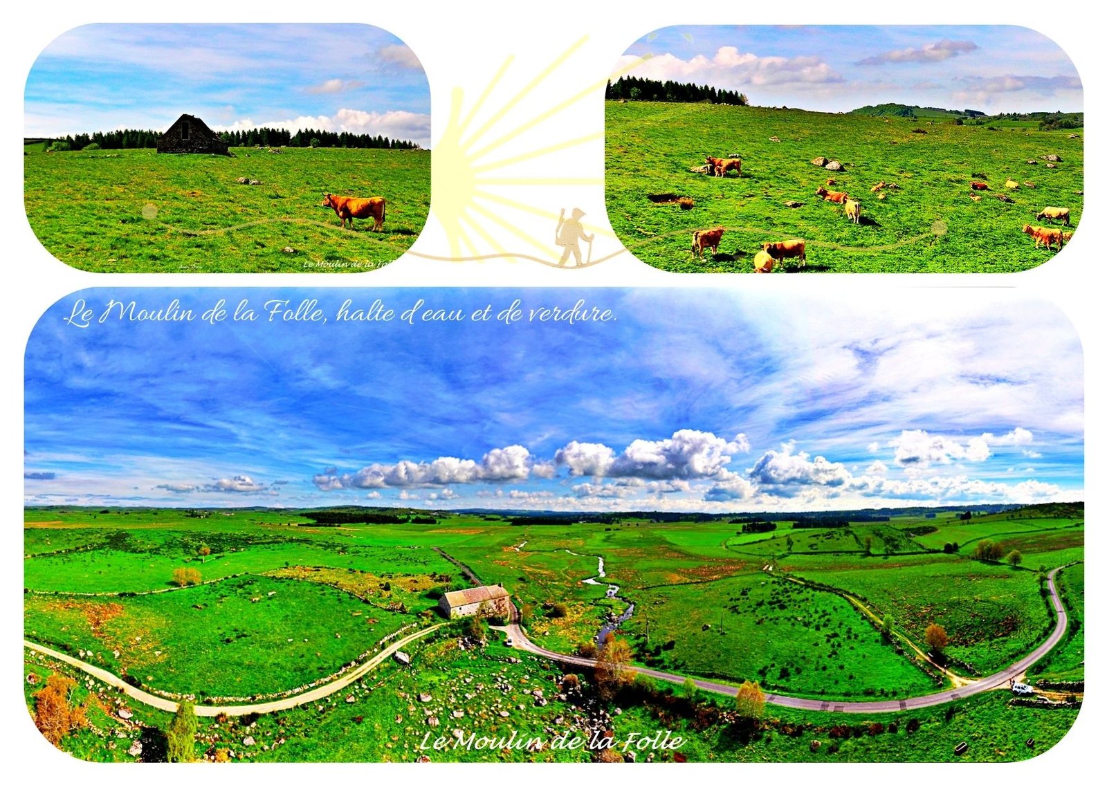 Entre ciel immense, troupeaux paisibles et chemins anciens, le Moulin de la Folle incarne l’équilibre simple entre nature et marche intérieure.