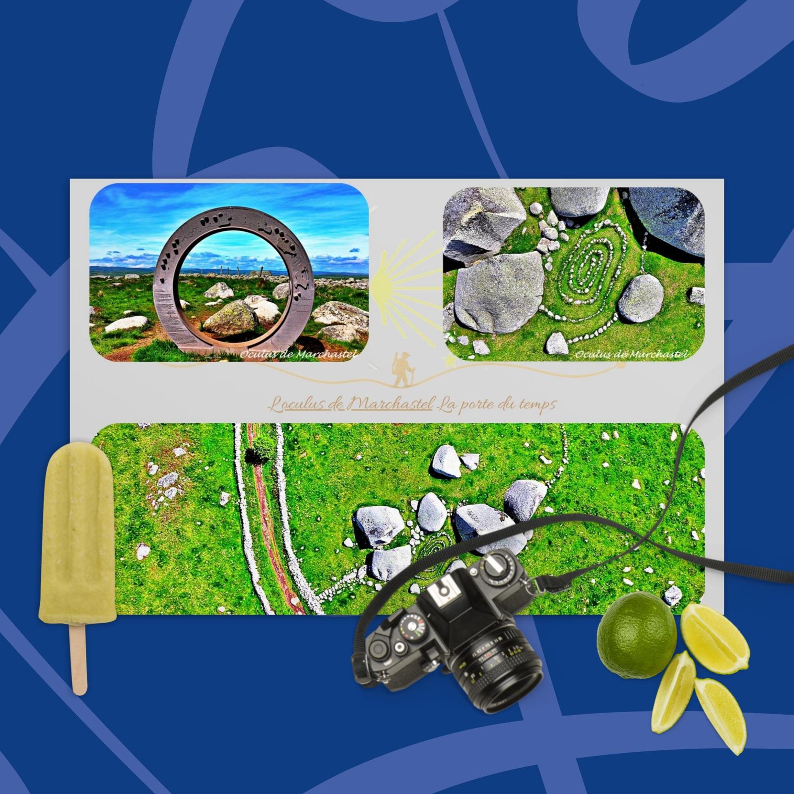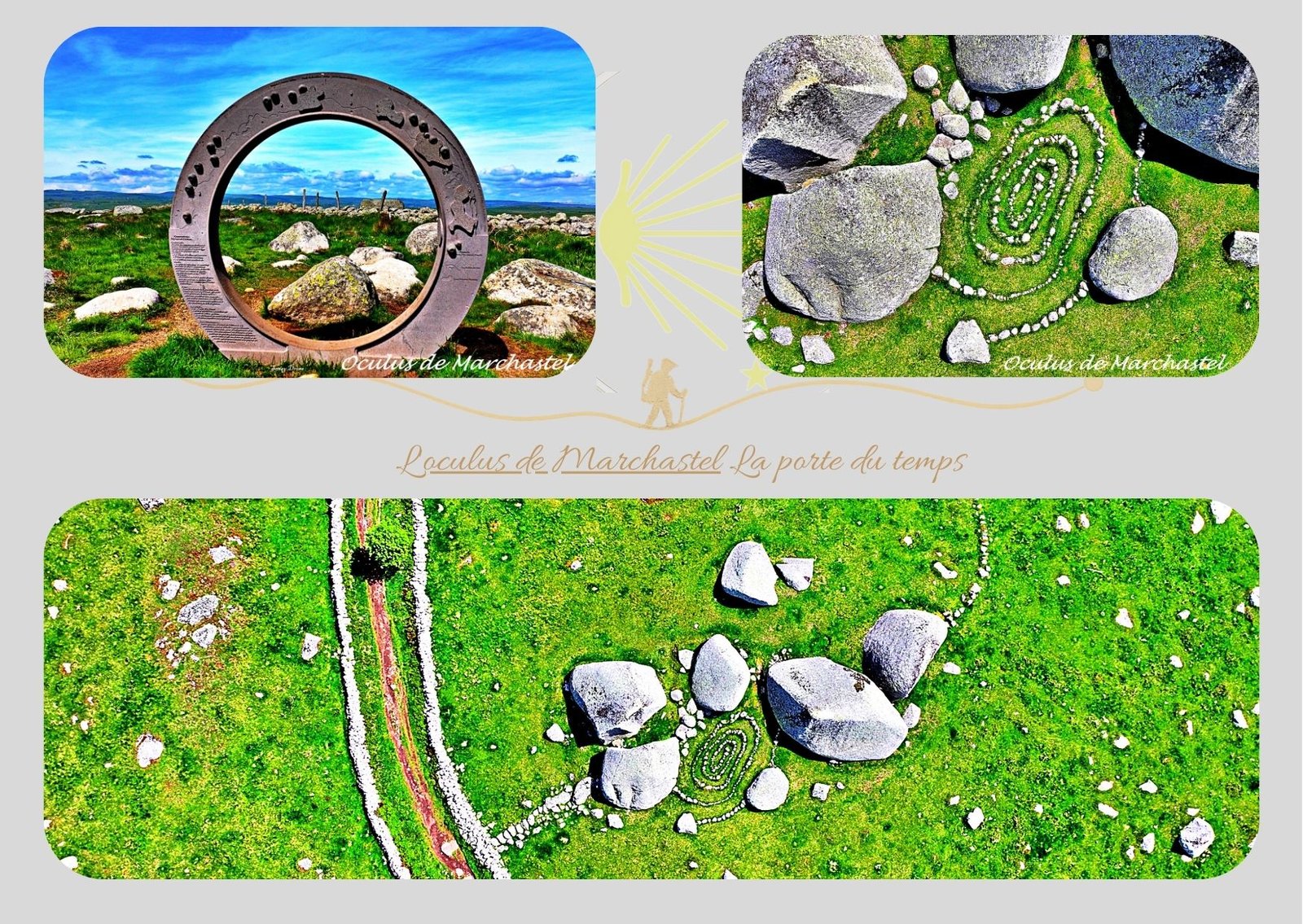 Sur les hauts plateaux de l’Aubrac, l’Oculus de Marchastel se dresse comme une énigme douce.Cercle de métal, spirale de pierres, lignes tracées par les pas et le vent : ici, le temps semble se plier, s’ouvrir, respirer.