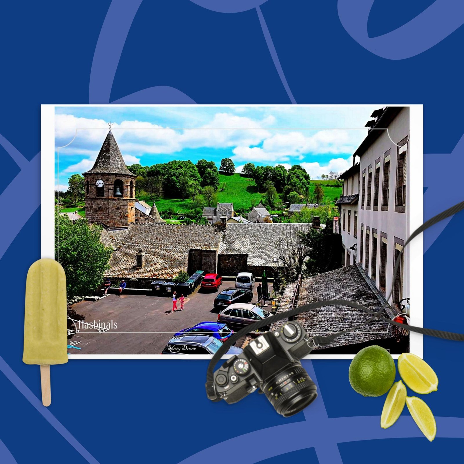 Vue du ciel, sa pierre blonde, ses volumes arrondis et son clocher semblent dialoguer avec les vastes prairies de l’Aubrac.