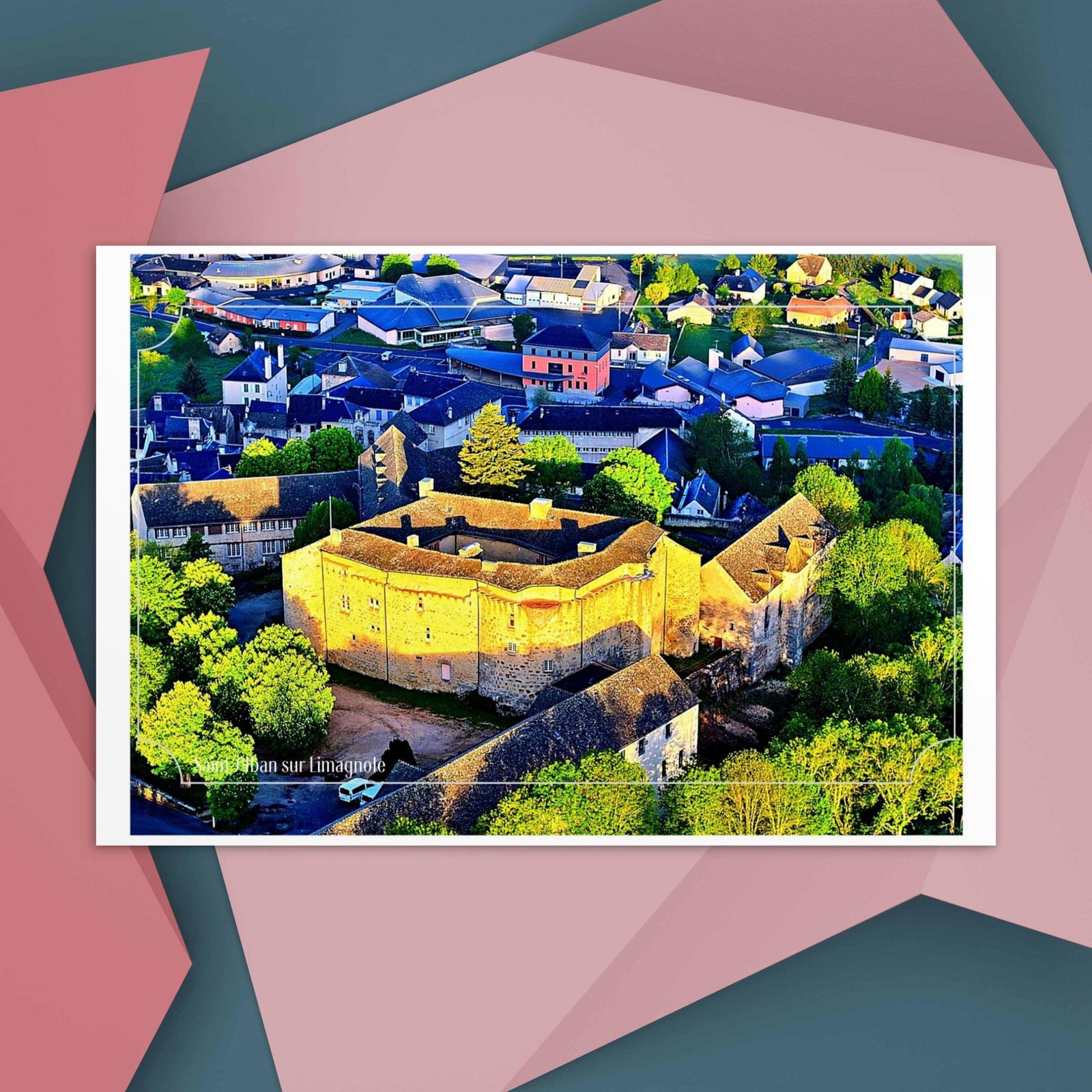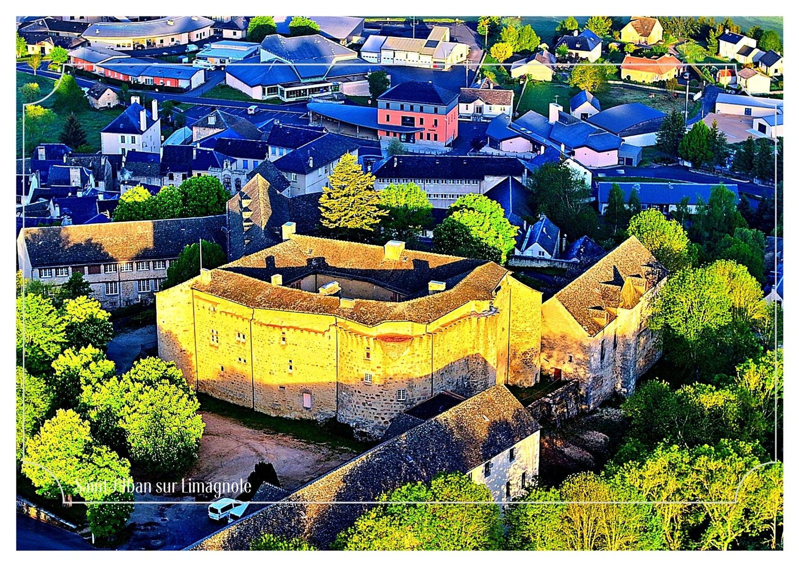 Depuis les hauteurs, le château de Saint-Alban-sur-Limagnole se révèle dans une lumière chaude, presque dorée. Ancienne forteresse devenue hôpital, ce lieu chargé d’histoire domine le village et accompagne le pèlerin sur son passage.