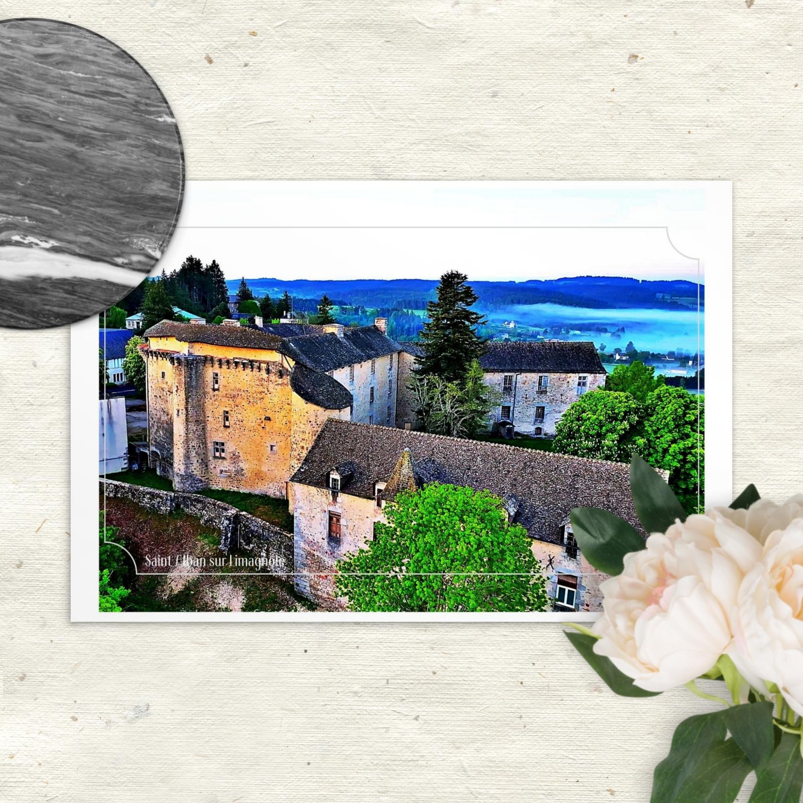 À Saint-Alban-sur-Limagnole, le chemin de Compostelle longe les murs épais du château, façonné par les siècles et les passages humains.Depuis les hauteurs, la pierre blonde dialogue avec la vallée qui s’éveille sous les nappes de brume. Les toits s’alignent, les arbres respirent, et le silence du matin enveloppe le village d’une douceur presque irréelle.
