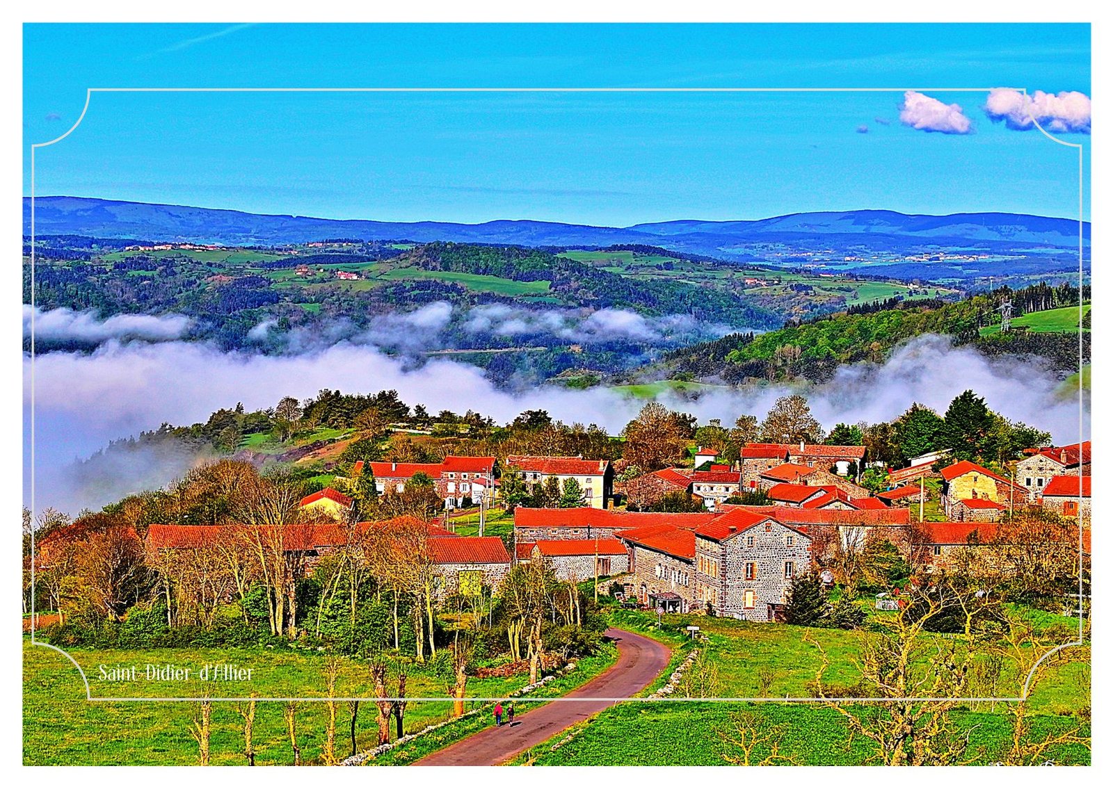 Accroché aux hauteurs, Saint-Didier-d’Allier s’ouvre sur un océan de collines et de brumes.Le GR65 y serpente doucement, traversant un paysage ample où les nuages frôlent les prés.Ici, le regard s’évade loin, très loin, et le pèlerin comprend que le chemin n’est pas qu’une ligne à suivre, mais un horizon à embrasser.