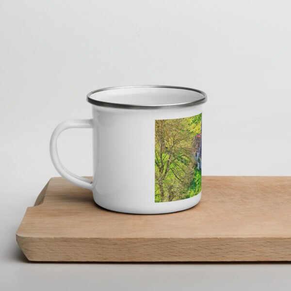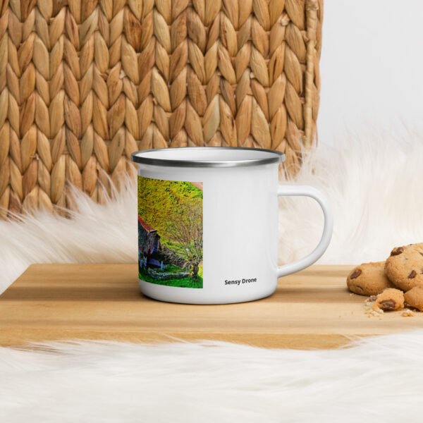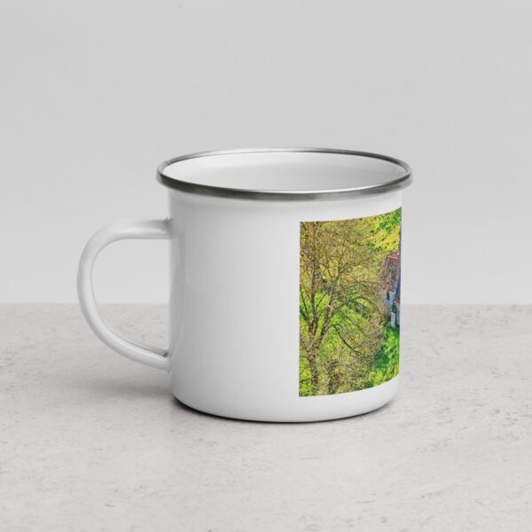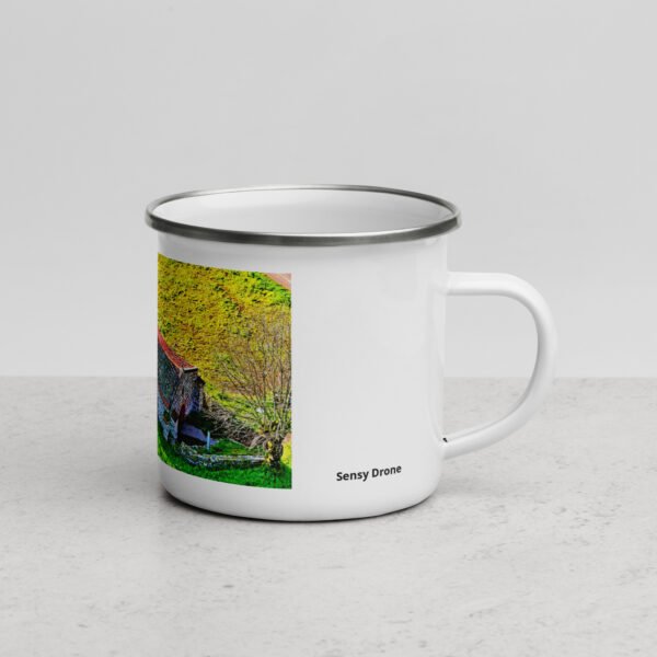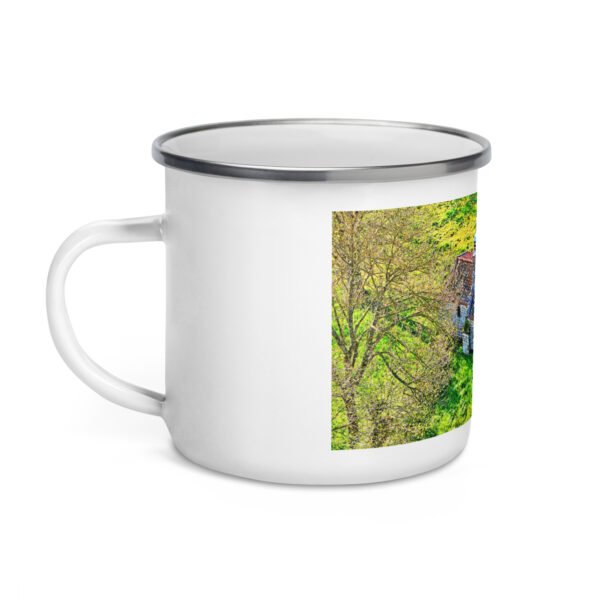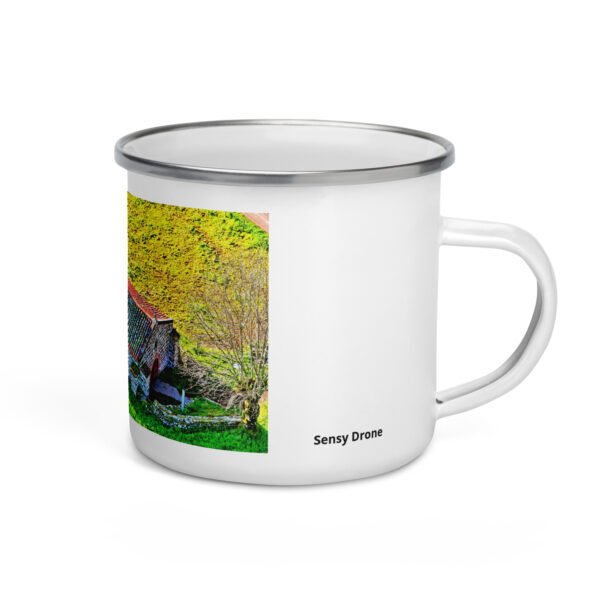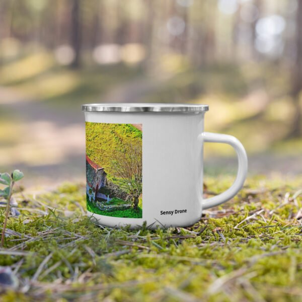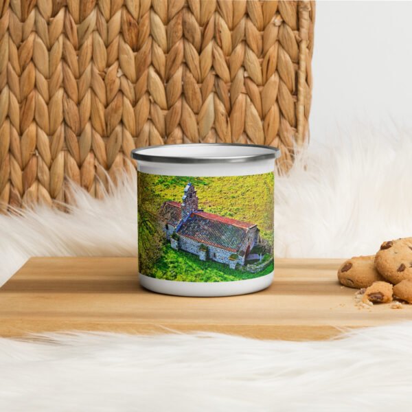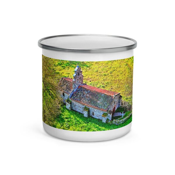 Au hameau de Montbonnet, la petite chapelle Saint-Roch veille depuis le XIᵉ siècle sur la Voie du Puy. Ce mug émaillé, léger et robuste, capture ce repère du chemin pour vos pauses à la maison comme en randonnée. Création originale Sensy Drone.Chaque campeur heureux a besoin d’une tasse de campeur unique. Elle est légère, durable et multifonctionnelle. Utilisez-la pour votre boisson préférée ou un repas chaud et attachez-la à votre sac pour un accès facile lors d’une randonnée.