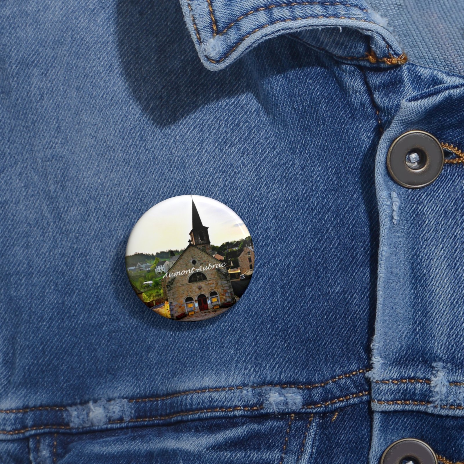 Small, glossy metal pin buttons that carry a slice of place and memory. Each button has a bright, UV-resistant mylar face that keeps colors vivid and details sharp. The classic safety-pin backing holds steady on denim jackets, canvas bags, and backpacks — an easy way to wear a keepsake or mark a trip. Made from metal with a protective glossy finish and assembled in the USA, these pins come in three sizes to suit lapels, collar corners, or bag flaps. They tuck into everyday outfits and travel gear, adding a quiet, personal touch that sparks conversation and recalls the feeling of wandering familiar streets.