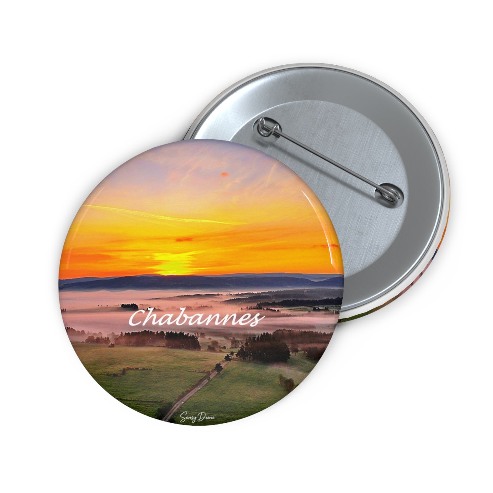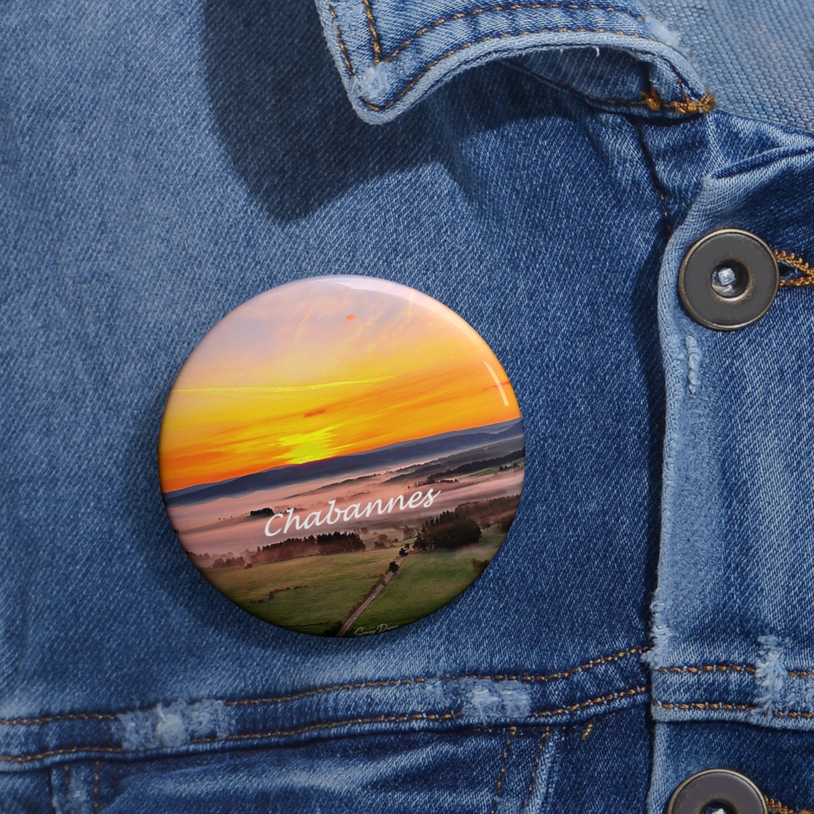 A small, glossy metal pin that carries a moment — sunrise colors washed across rolling fields, printed in vivid detail and sealed under a scratch- and UV-resistant mylar face. It fastens with a sturdy steel safety pin backing, so it sits flat and secure on jackets, tote bags, denim collars, or lapels. Lightweight and available in three sizes, this pin makes it easy to wear a favorite place, memory, or message and share it in everyday moments. Assembled in the USA from globally sourced parts, it’s made to keep its color and shine through wear and time.