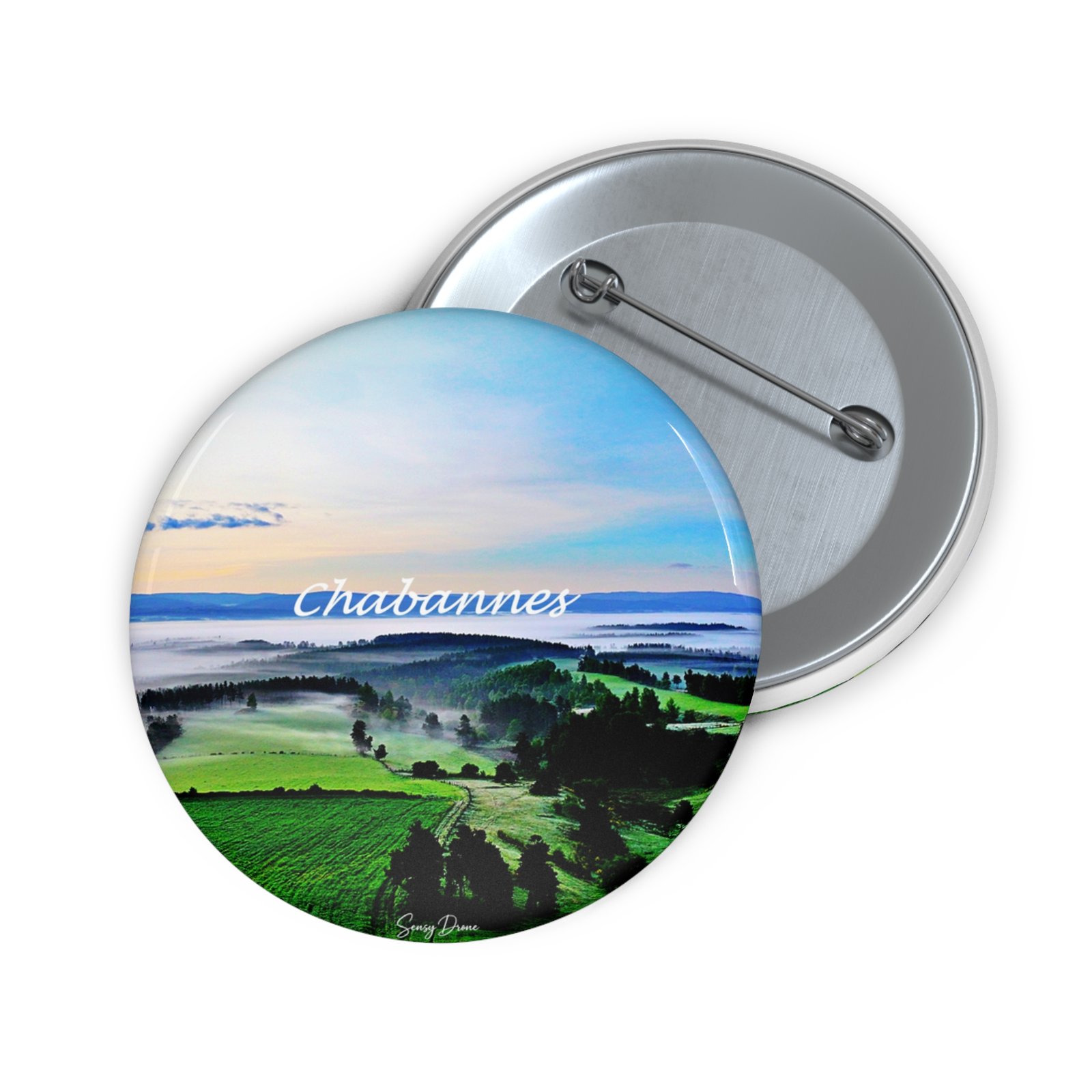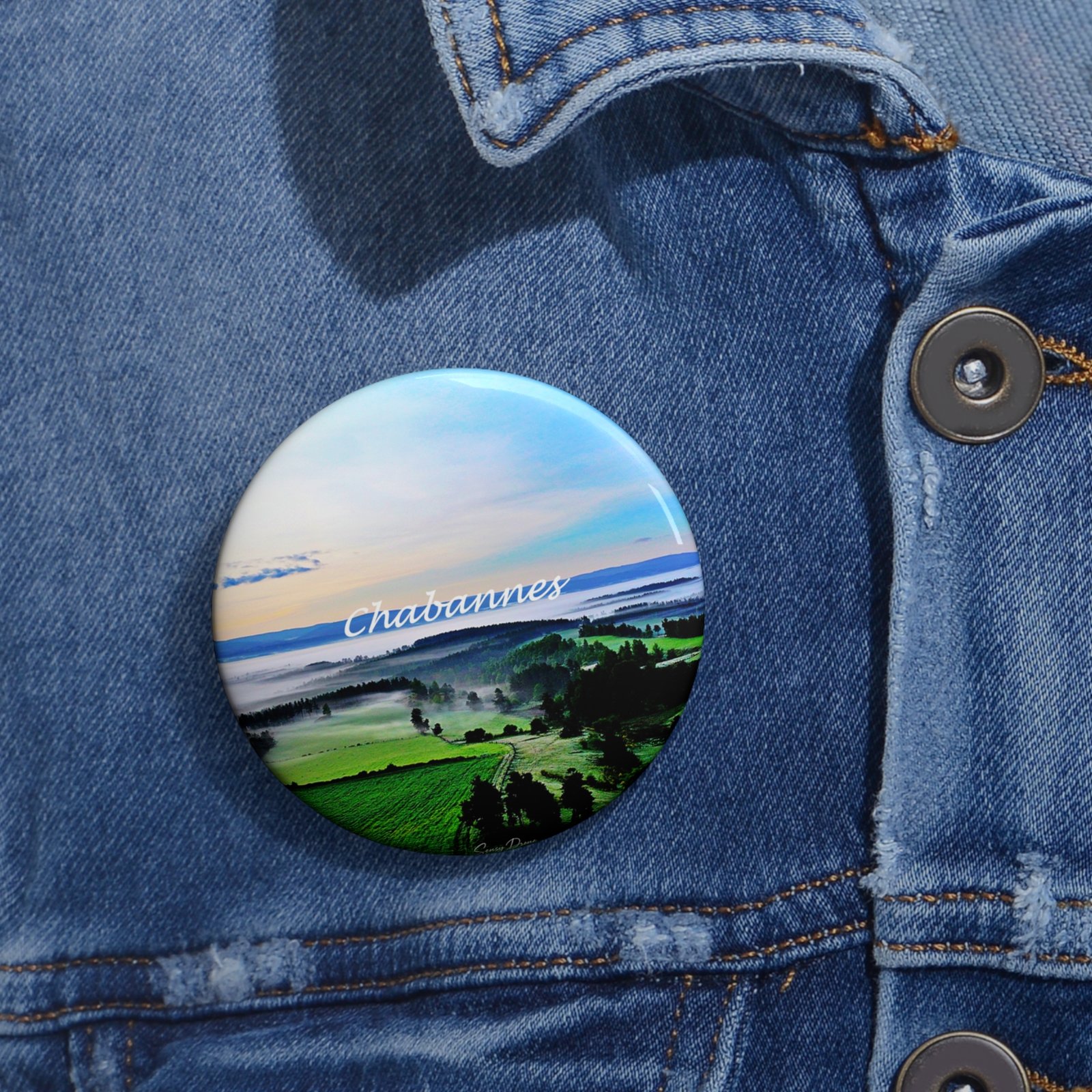 A small, glossy metal pin that carries a slice of landscape wherever you go. The round button shows crisp, vibrant printing with a protective mylar shine that resists scratches and UV fading. It pins securely to jackets, backpacks, hats, or tote bags with a sturdy steel safety pin back — an easy way to add personality or a memory to everyday gear. Lightweight and available in three sizes, this assembled-in-the-USA pin brings bright color and a tactile accent to travel kits, denim jackets, or layered pin collections.