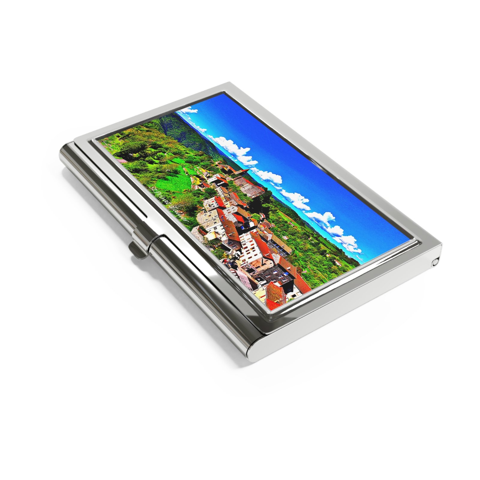 A slim, polished metal card holder that brings a tactile touch of elegance to everyday networking. The glossy metallic exterior catches light while the velvet-like interior cradles up to 20 standard business cards. A subtle friction-snap closure keeps contents secure without fuss. The front panel can display a vivid image or personal design — a little window for a favorite scene, logo, or travel memory — so each exchange feels intentional and memorable. Comfortable in the hand and pocket-friendly, it’s made for people who move between meetings, events, and casual introductions with quiet confidence.