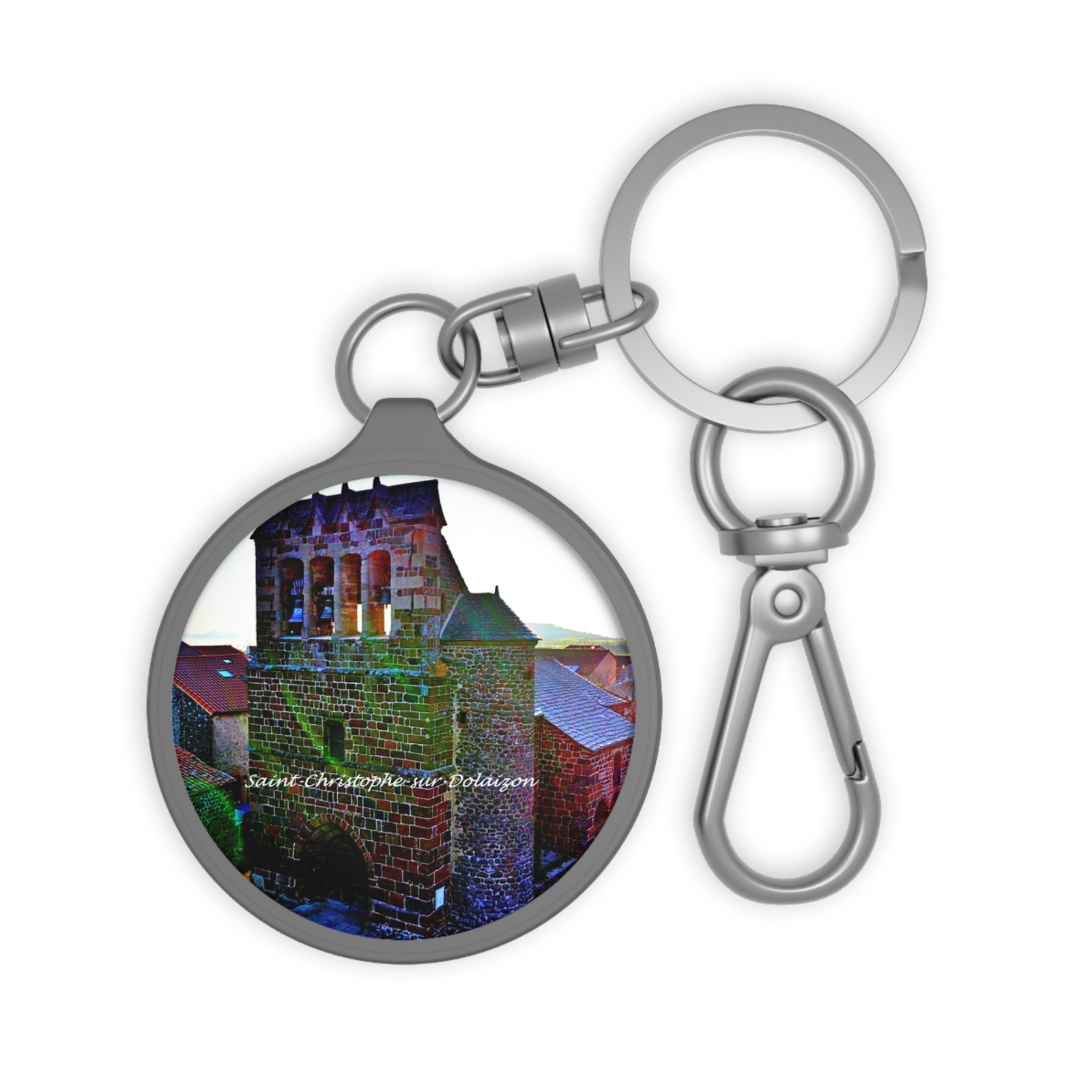 A compact, round keyring that carries a tiny window into an old stone village — vivid, textured color sits beneath a matte TPU shield so the image looks lively without glare. The solid metal fittings and included swivel snap make it easy to clip to belt loops, bags, or lanyards. Sturdy acrylic holds the art crisp while the TPU cover resists scratches; treat it gently to avoid moisture, high heat, or direct sun to keep colors bright. It’s crafted with certified materials and reliable hardware for everyday carry.