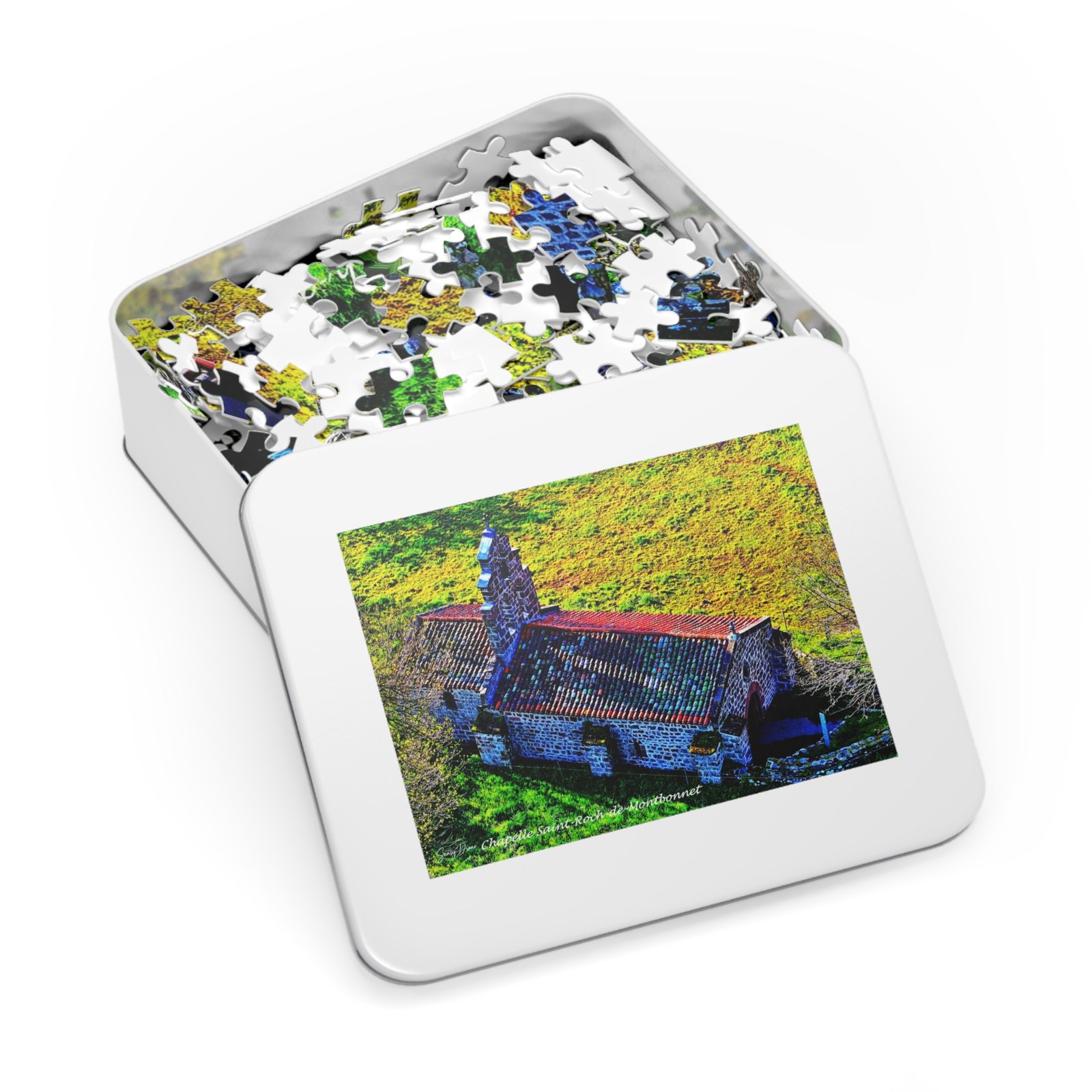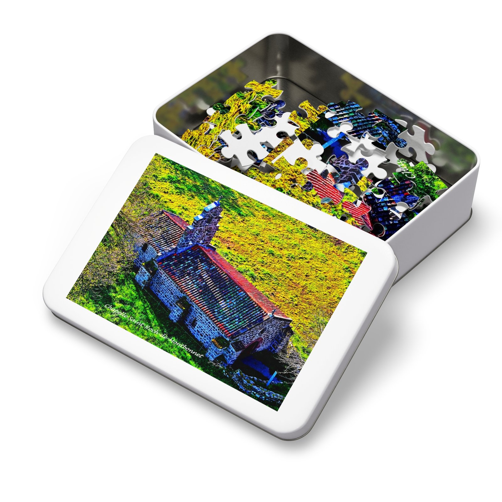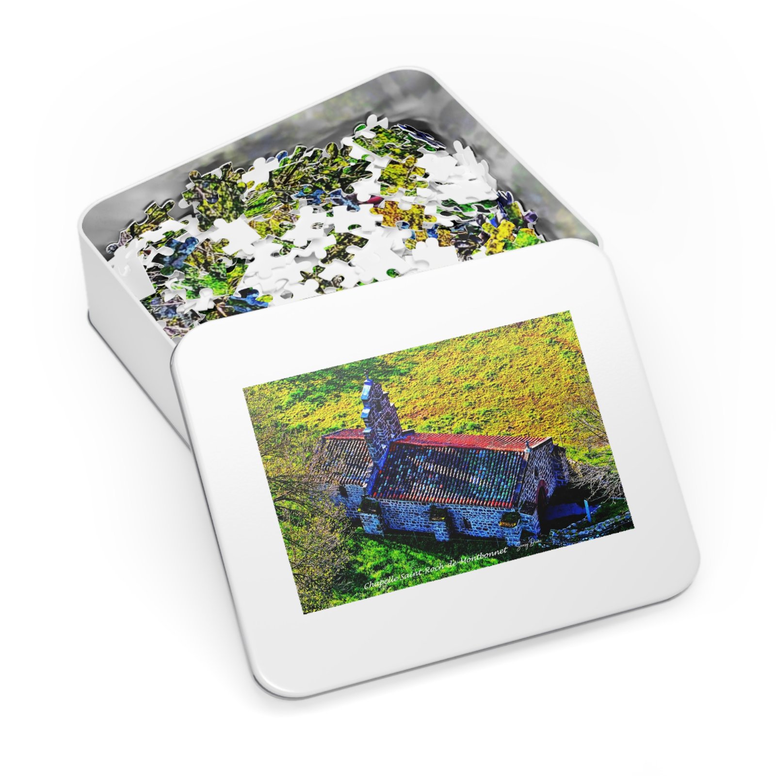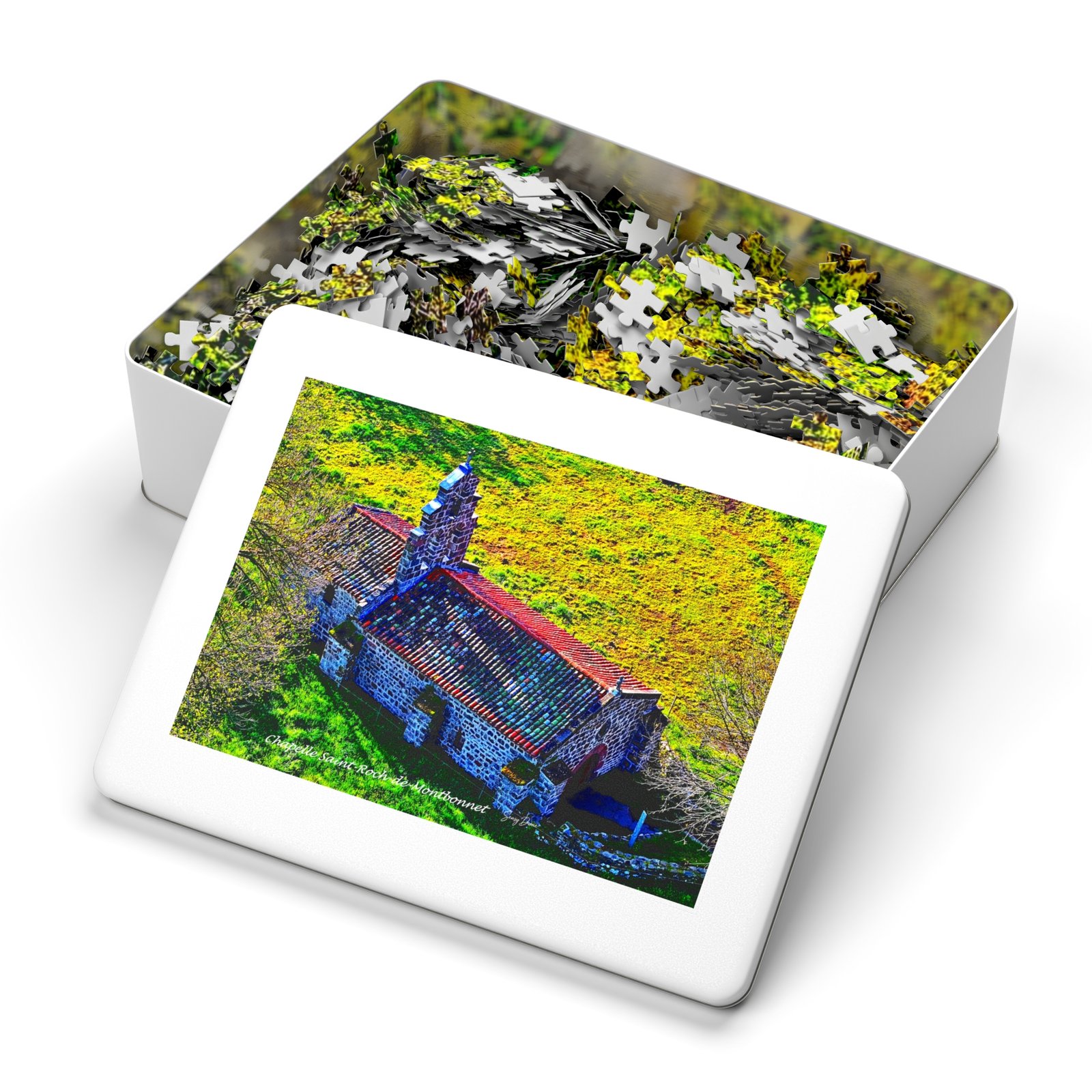 A handcrafted jigsaw experience that turns a sunlit stone chapel and its rolling meadow into a relaxing, vibrant puzzle night. Each piece snaps together with satisfying precision, revealing glossy, lifelike colors that pop across the finished image. Stored in a sleek white metal tin with the completed artwork on the lid, this set travels easily to friends’ houses, weekend cabins, or quiet afternoons at home. Choose a piece count that suits your mood — quick, meditative, or deeply absorbing — and watch the scene come alive piece by piece. The full-bleed box art helps guide assembly while the glossy finish gives the completed picture a luminous, museum-quality sheen.