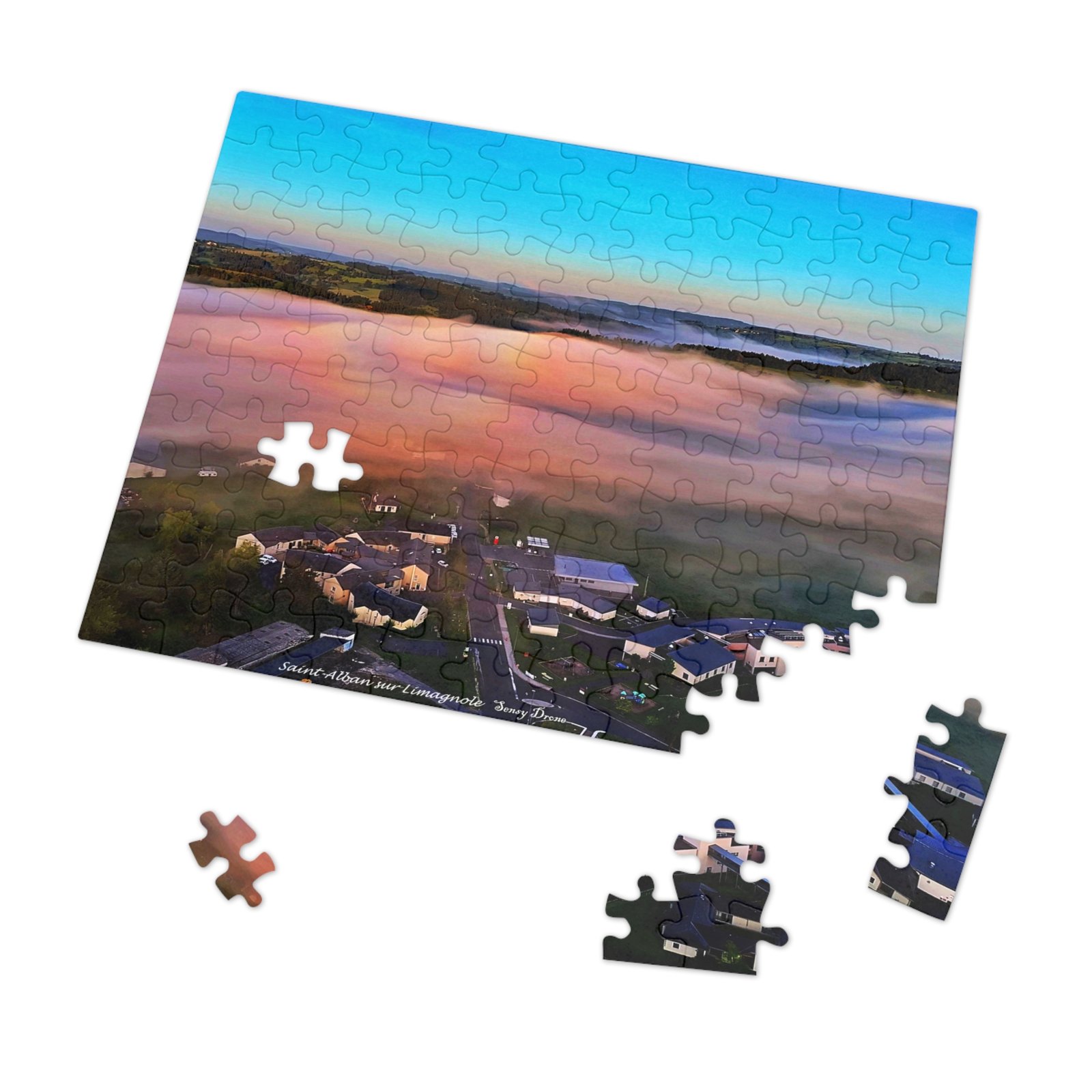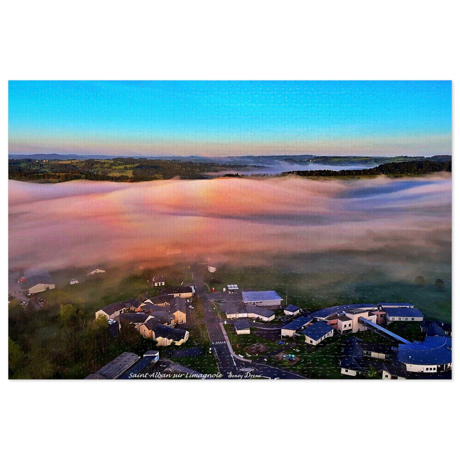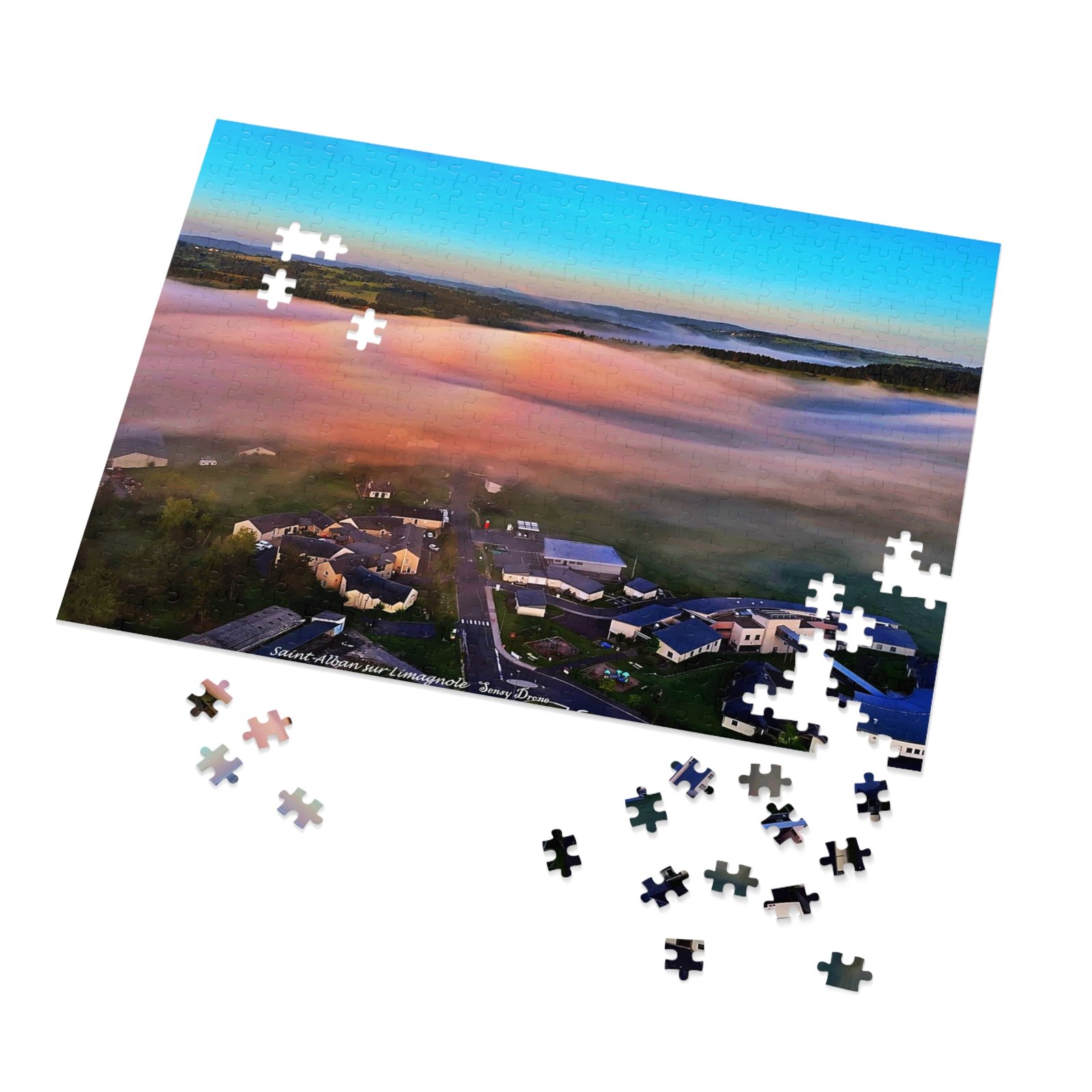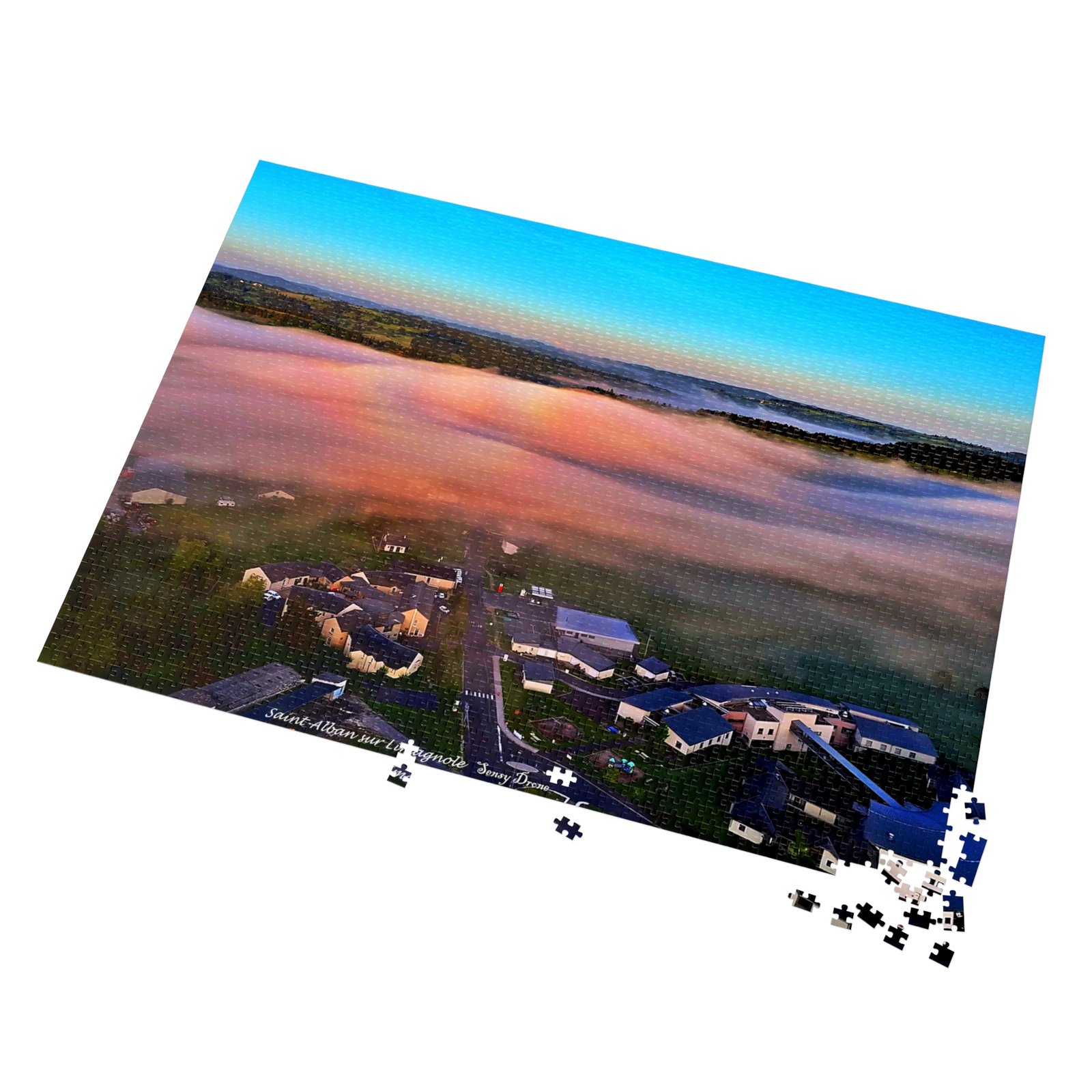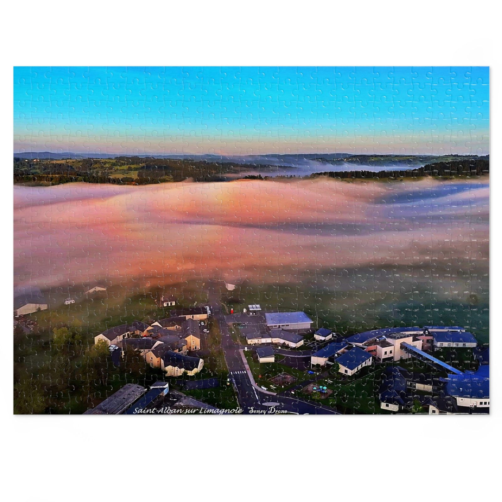 A tactile celebration of dawn over a misty campus — this metal-tin jigsaw invites slow, focused moments. The glossy print brings out the sunrise’s peach and sky-blue gradients, while the crisp chipboard pieces lock together smoothly. Work the edges into the warm fog, find the clusters of buildings, and watch the landscape resolve piece by piece. The tin keeps the puzzle safe between sessions and features the finished image so you always know what you’re building toward.