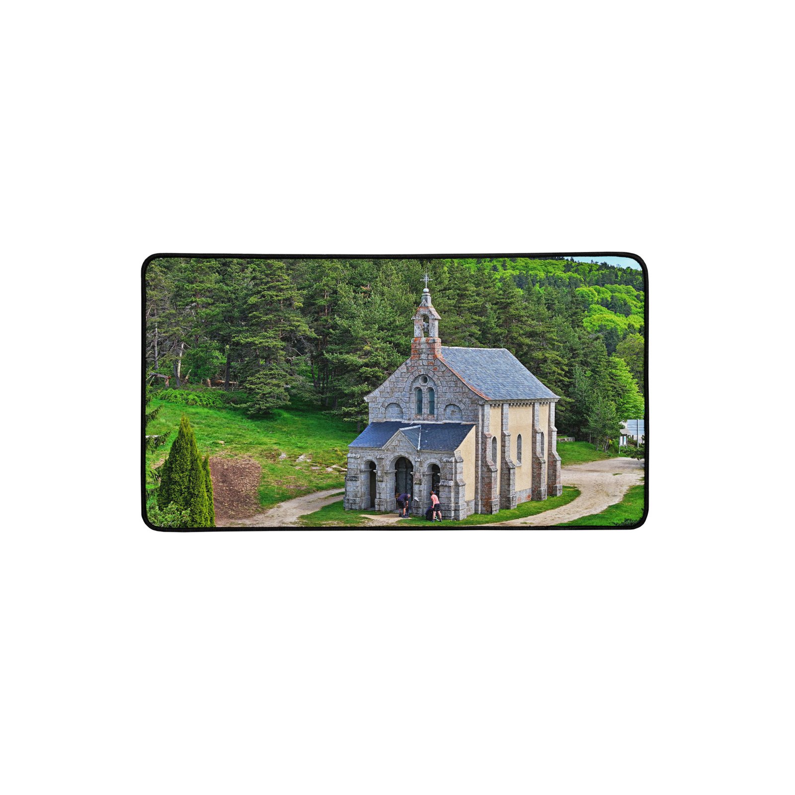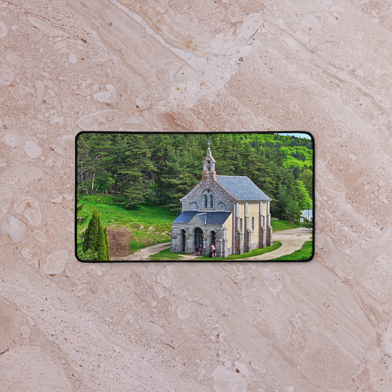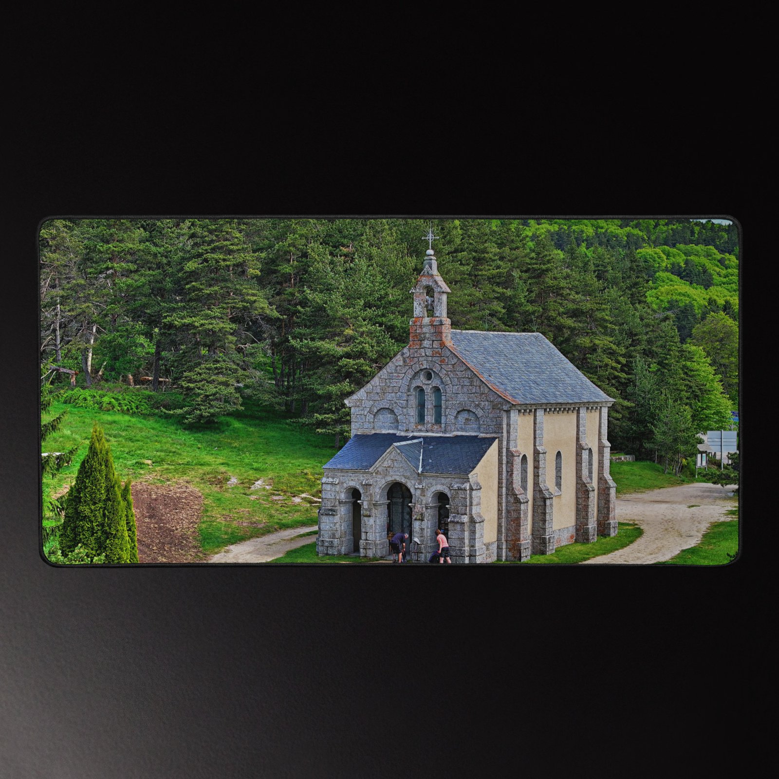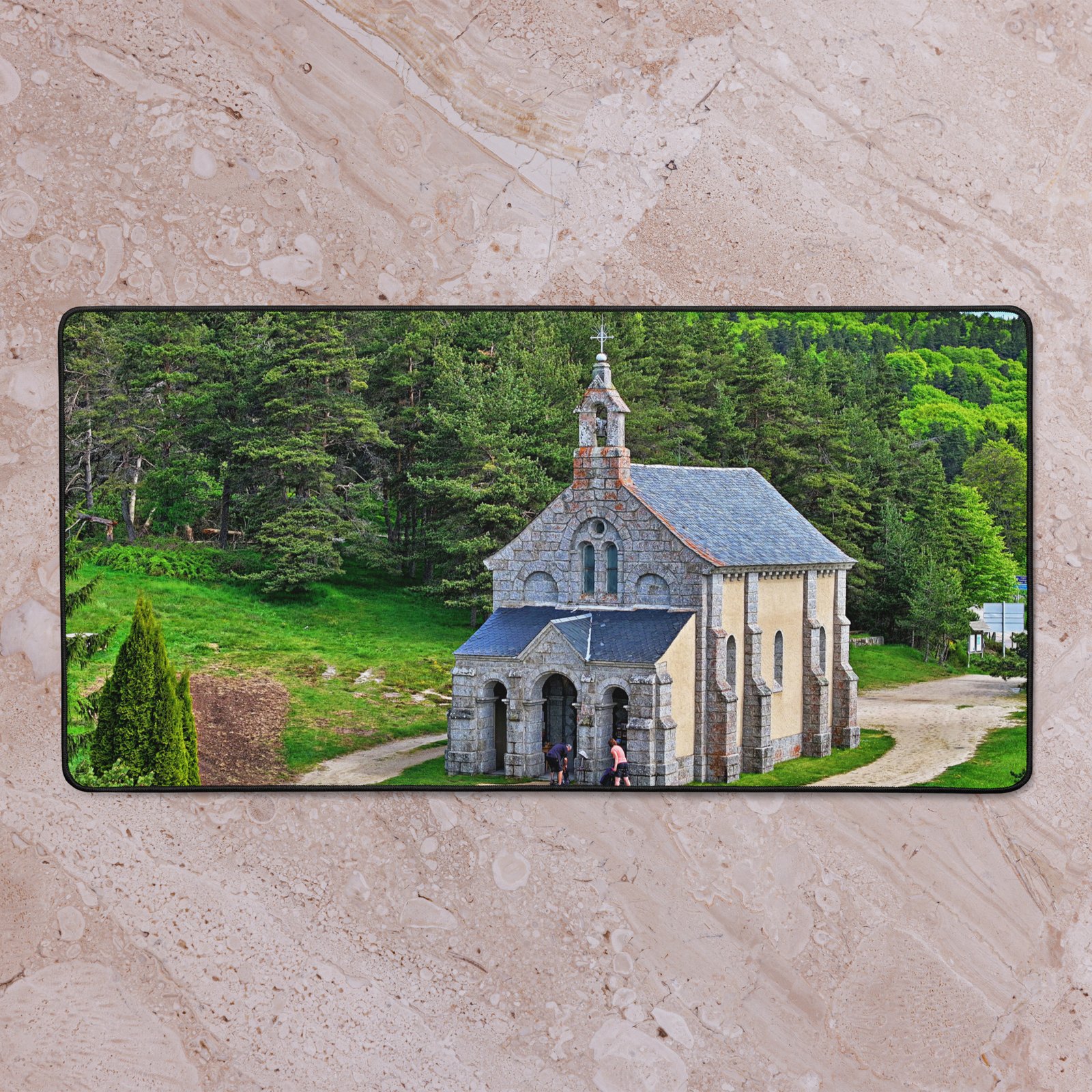 Sur la Voie du Puy (GR65), la chapelle Saint-Roch veille sur les marcheurs. Ce sous-main lisse et antidérapant protège votre bureau, stabilise clavier & souris et garde, sous les yeux, la “mémoire du chemin” – cette prière silencieuse gravée dans la pierre. Visuel original Sensy Drone.Conservez un bureau parfait avec un tapis lisse et antidérapant conçu pour le jeu ou le travail. Que vous jouiez, que vous travailliez ou que vous essayiez simplement d’empêcher votre tasse à café de se renverser, ce sous-main est là pour vous. Ce support antidérapant maintient votre configuration stable et ses bords cousus assurent sa résistance aux effets du temps !