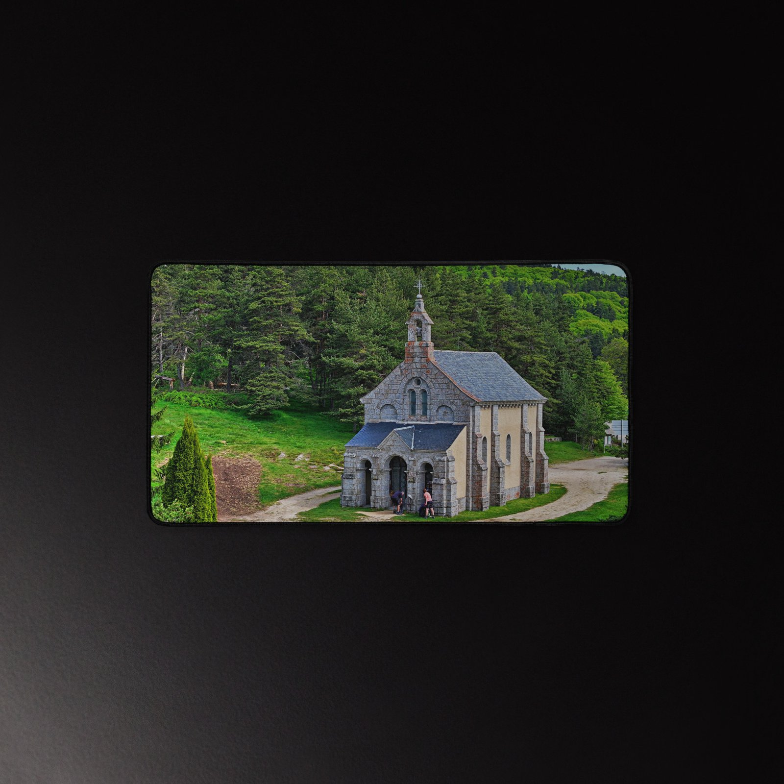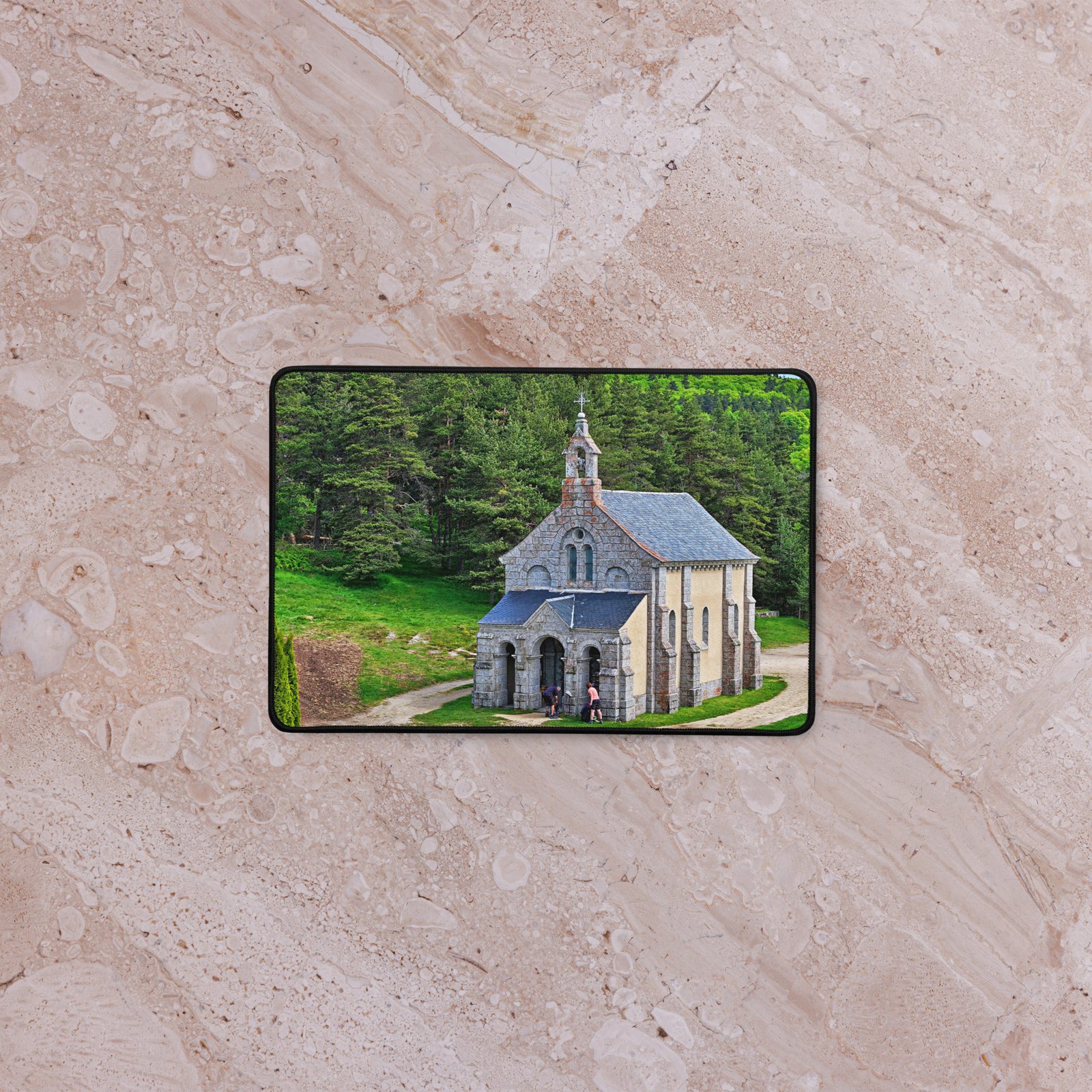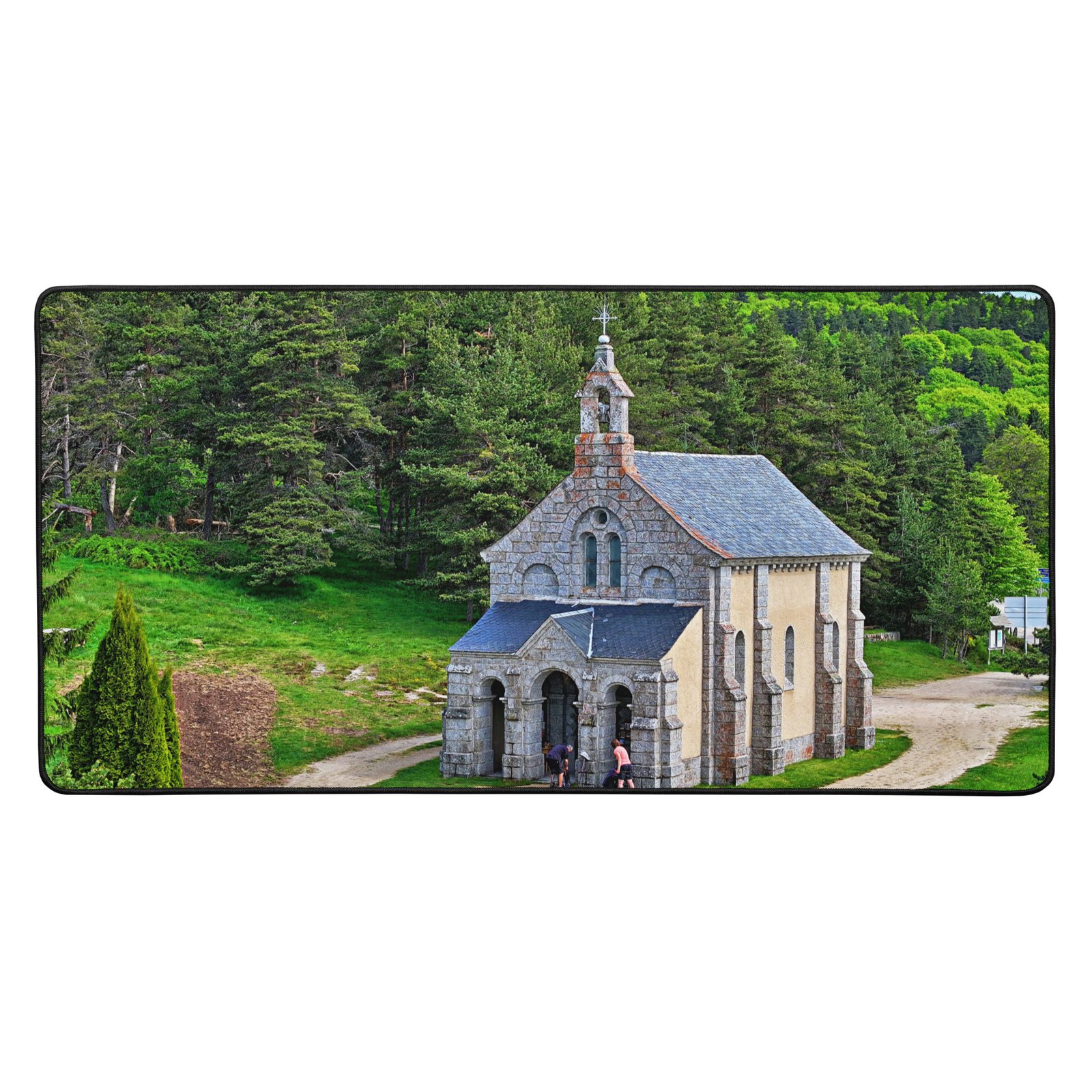 Sur la Voie du Puy (GR65), la chapelle Saint-Roch veille sur les marcheurs. Ce sous-main lisse et antidérapant protège votre bureau, stabilise clavier & souris et garde, sous les yeux, la “mémoire du chemin” – cette prière silencieuse gravée dans la pierre. Visuel original Sensy Drone.Conservez un bureau parfait avec un tapis lisse et antidérapant conçu pour le jeu ou le travail. Que vous jouiez, que vous travailliez ou que vous essayiez simplement d’empêcher votre tasse à café de se renverser, ce sous-main est là pour vous. Ce support antidérapant maintient votre configuration stable et ses bords cousus assurent sa résistance aux effets du temps !