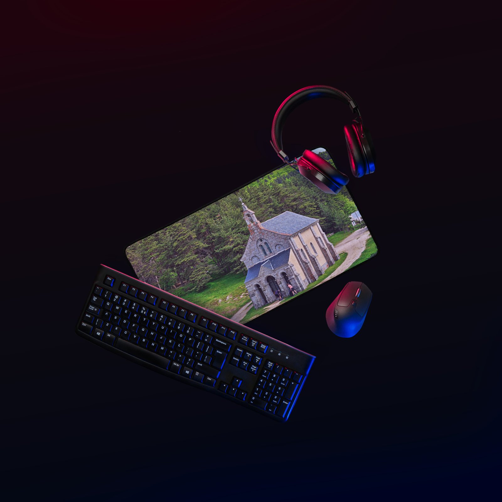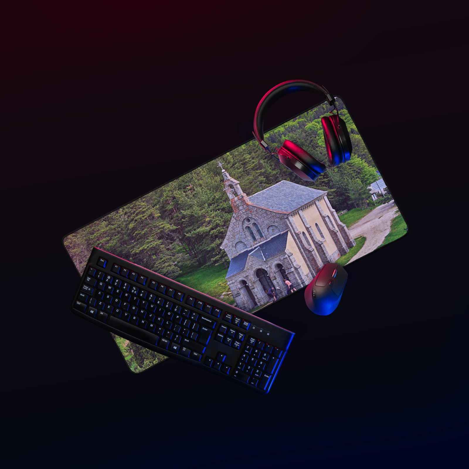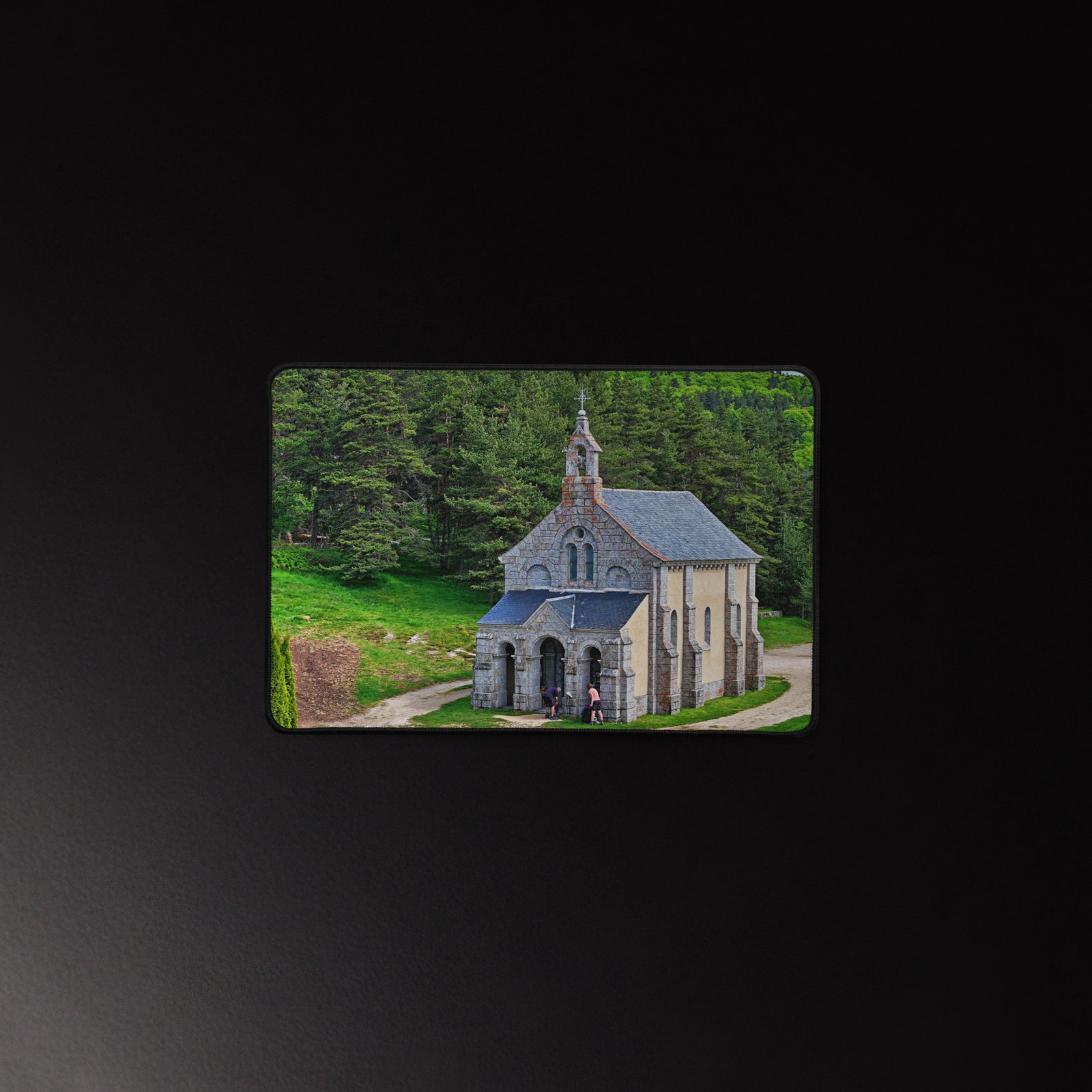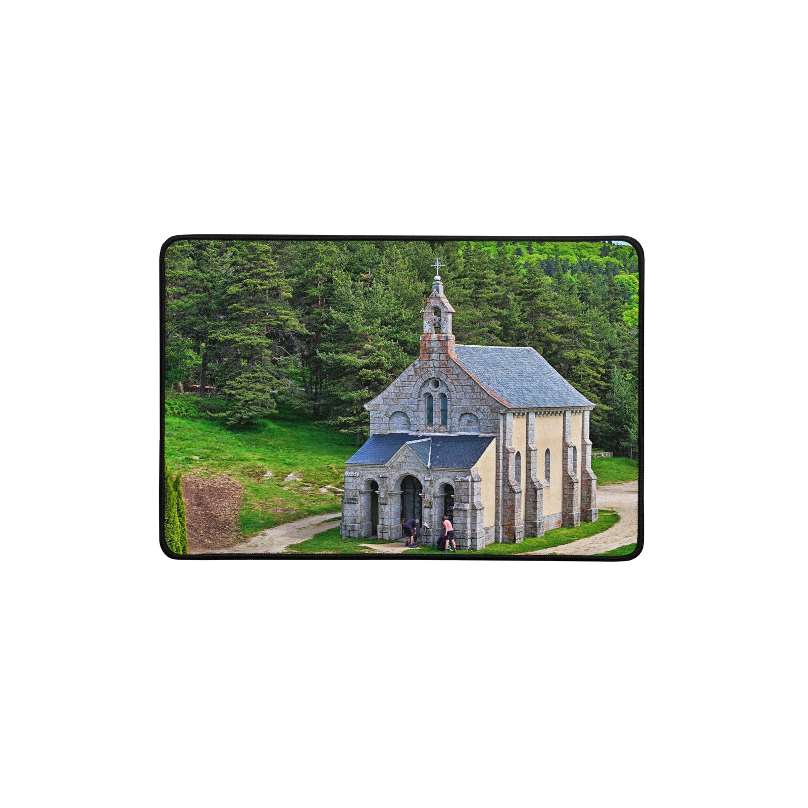 Sur la Voie du Puy (GR65), la chapelle Saint-Roch veille sur les marcheurs. Ce sous-main lisse et antidérapant protège votre bureau, stabilise clavier & souris et garde, sous les yeux, la “mémoire du chemin” – cette prière silencieuse gravée dans la pierre. Visuel original Sensy Drone.Conservez un bureau parfait avec un tapis lisse et antidérapant conçu pour le jeu ou le travail. Que vous jouiez, que vous travailliez ou que vous essayiez simplement d’empêcher votre tasse à café de se renverser, ce sous-main est là pour vous. Ce support antidérapant maintient votre configuration stable et ses bords cousus assurent sa résistance aux effets du temps !