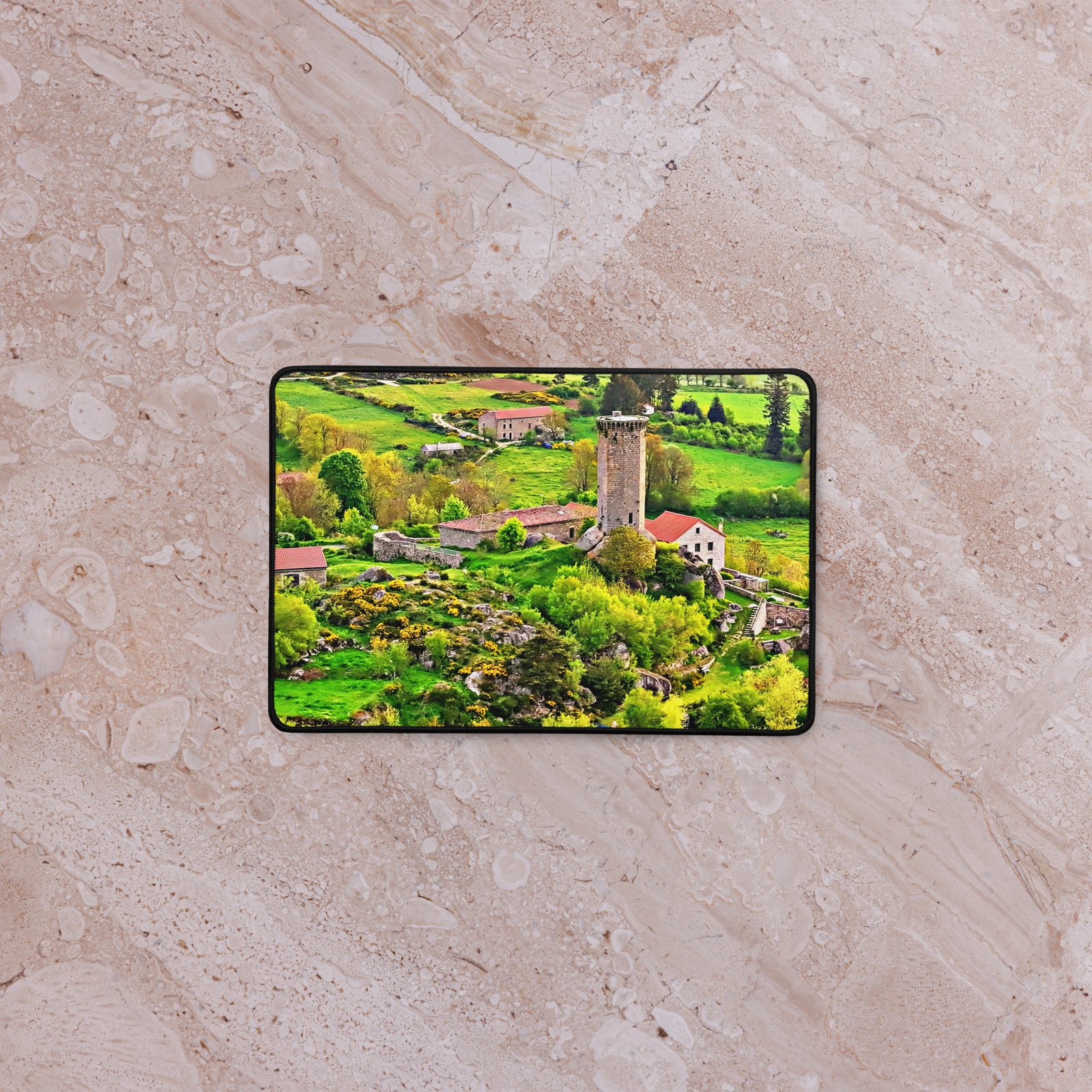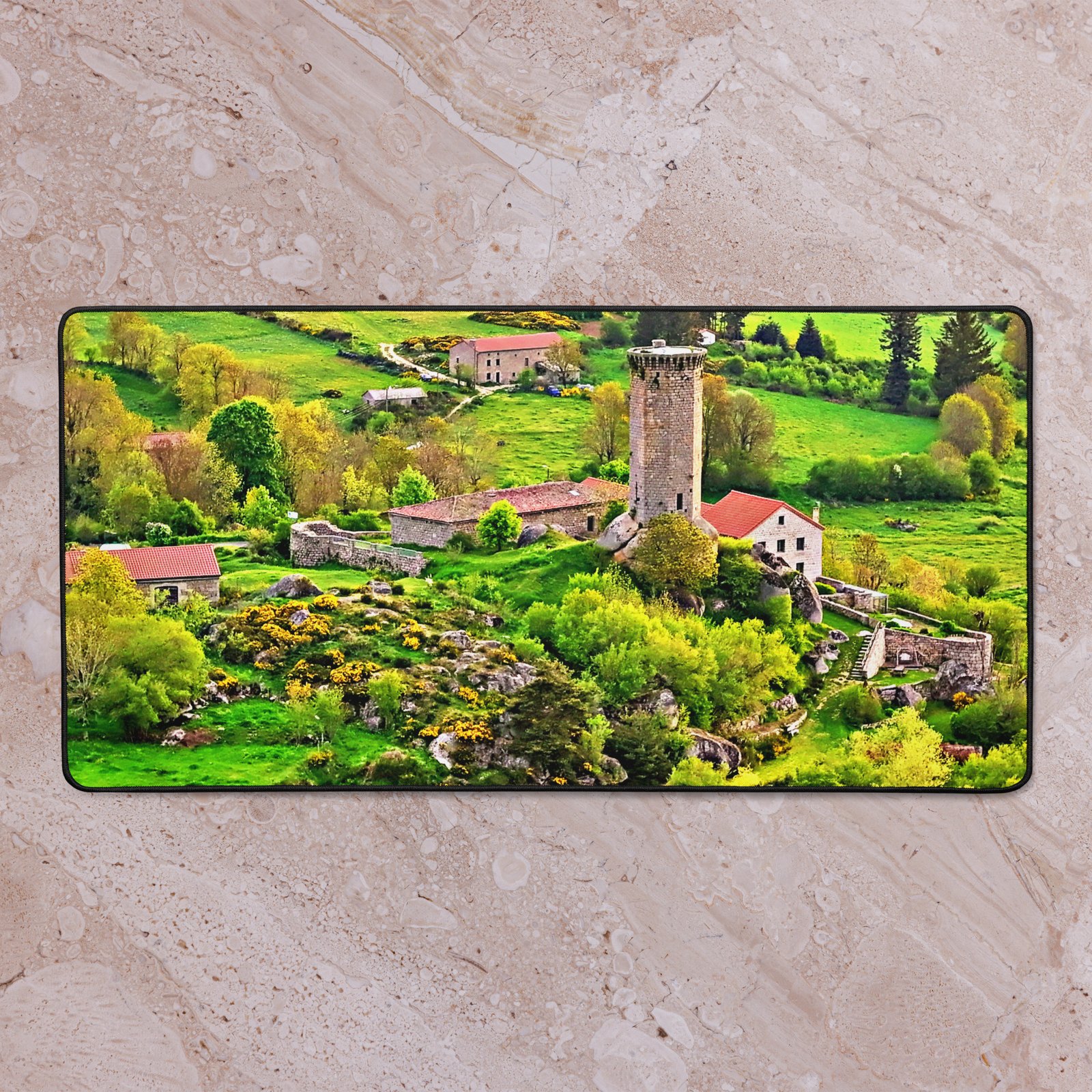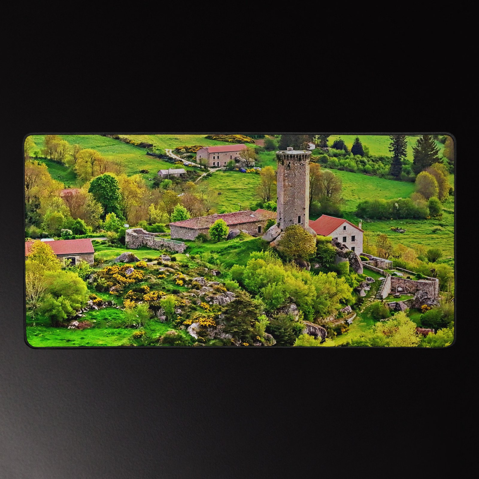 Près de Saugues se dresse la tour de Clauze, fière et penchée, vestige d’un château du XVe siècle sur la Voie du Puy. Ce sous-main lisse et antidérapant protège ton bureau, stabilise clavier & souris et garde, sous les yeux, un éclat de patrimoine du GR65. Visuel original Sensy Drone. Conservez un bureau parfait avec un tapis lisse et antidérapant conçu pour le jeu ou le travail. Que vous jouiez, que vous travailliez ou que vous essayiez simplement d’empêcher votre tasse à café de se renverser, ce sous-main est là pour vous. Ce support antidérapant maintient votre configuration stable et ses bords cousus assurent sa résistance aux effets du temps !