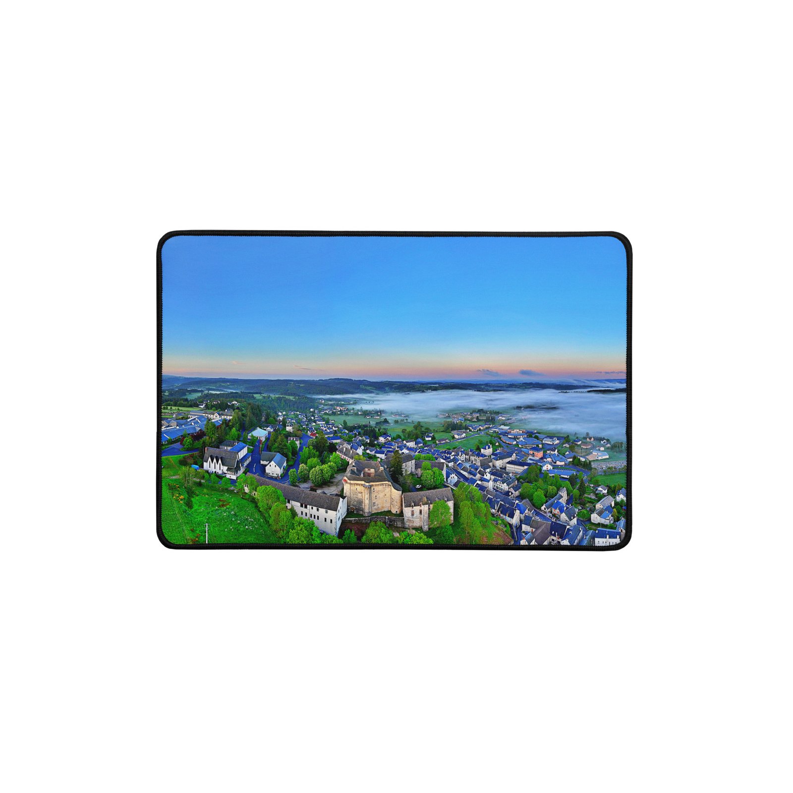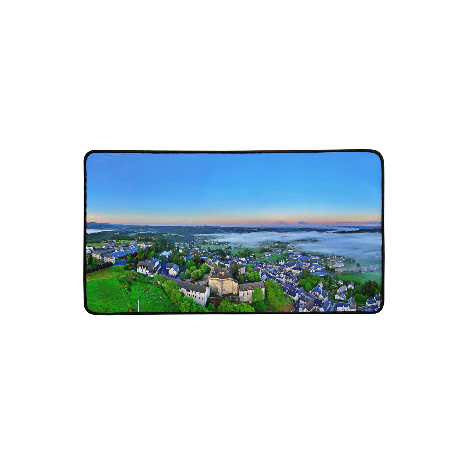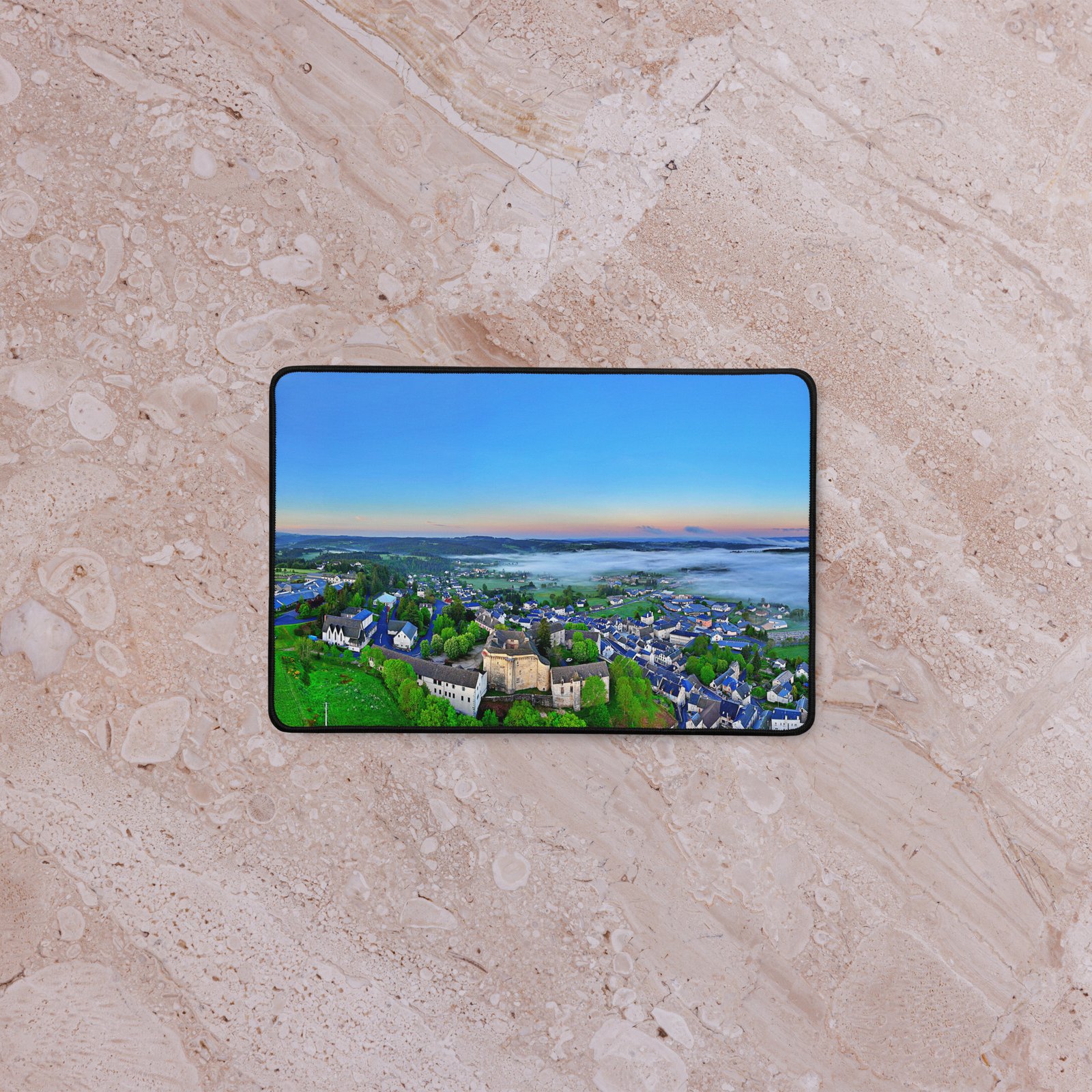 Posé au-dessus du village, le château de Saint-Alban-de-Limagnole domine la Voie du Puy. Ce sous-main lisse et antidérapant protège le bureau, stabilise clavier & souris et garde, sous les yeux, l’allure fière de cette sentinelle du GR65. Visuel original Sensy Drone Conservez un bureau parfait avec un tapis lisse et antidérapant conçu pour le jeu ou le travail. Que vous jouiez, que vous travailliez ou que vous essayiez simplement d’empêcher votre tasse à café de se renverser, ce sous-main est là pour vous. Ce support antidérapant maintient votre configuration stable et ses bords cousus assurent sa résistance aux effets du temps !