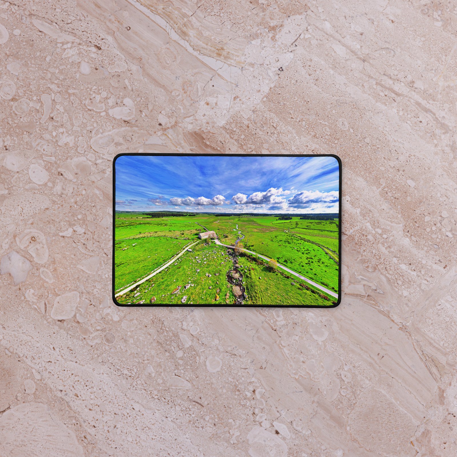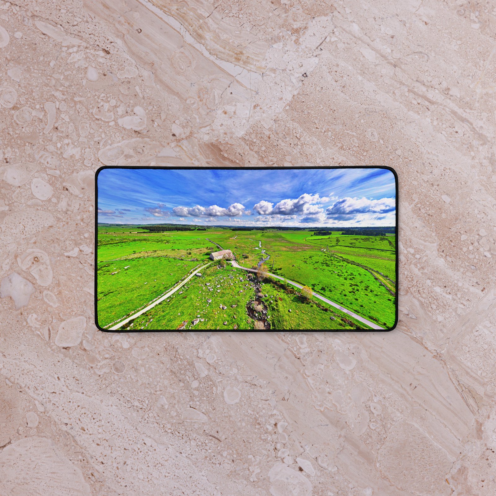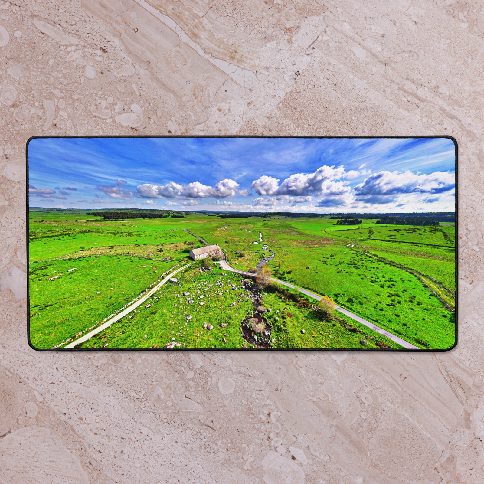 Seul au cœur de l’Aubrac, le Domaine du Sauvage veille sur le GR65. Sa domerie médiévale (attestée en 1217) raconte l’accueil des marcheurs depuis des siècles. Ce sous-main lisse et antidérapant protège le bureau, stabilise clavier & souris et garde, sous les yeux, l’appel du plateau. Visuel original Sensy Drone.Conservez un bureau parfait avec un tapis lisse et antidérapant conçu pour le jeu ou le travail. Que vous jouiez, que vous travailliez ou que vous essayiez simplement d’empêcher votre tasse à café de se renverser, ce sous-main est là pour vous. Ce support antidérapant maintient votre configuration stable et ses bords cousus assurent sa résistance aux effets du temps !