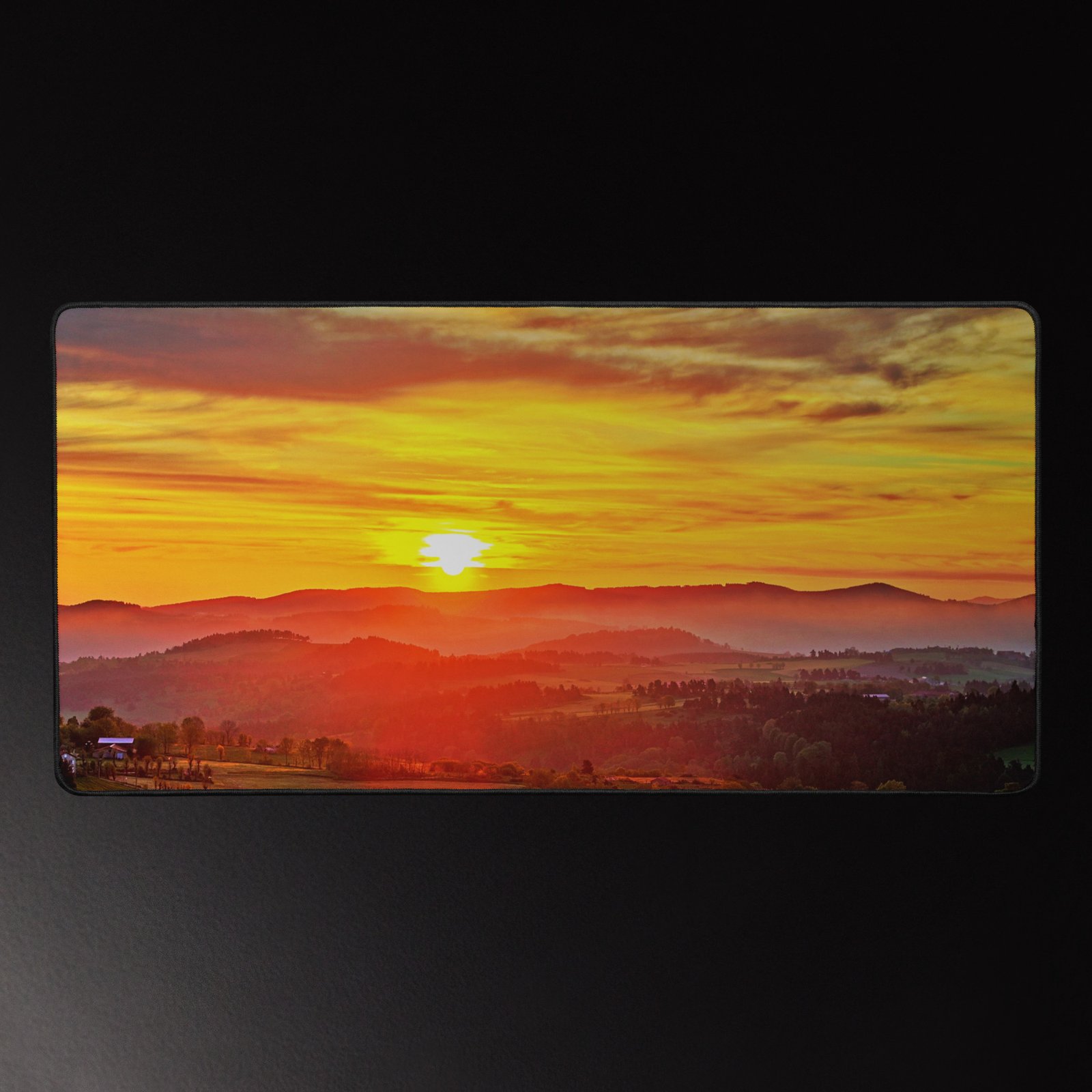 La golden hour embrase Saugues et les reliefs du GR65 : un matin chaud et lumineux qui donne envie de reprendre la route. Ce sous-main lisse et antidérapant protège ton bureau, stabilise clavier & souris et garde ce lever de soleil sous les yeux toute la journée. Visuel original Sensy Drone.Conservez un bureau parfait avec un tapis lisse et antidérapant conçu pour le jeu ou le travail. Que vous jouiez, que vous travailliez ou que vous essayiez simplement d’empêcher votre tasse à café de se renverser, ce sous-main est là pour vous. Ce support antidérapant maintient votre configuration stable et ses bords cousus assurent sa résistance aux effets du temps !