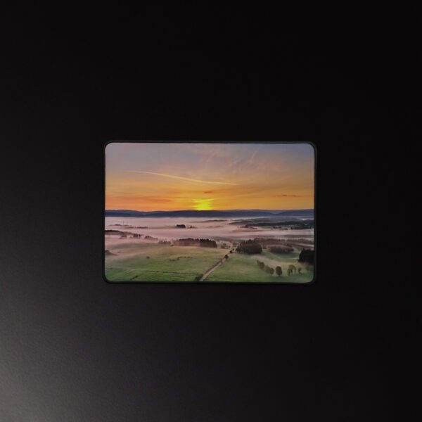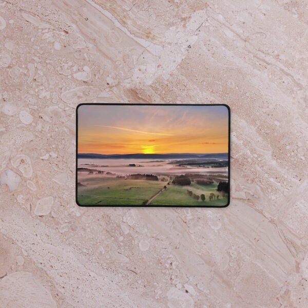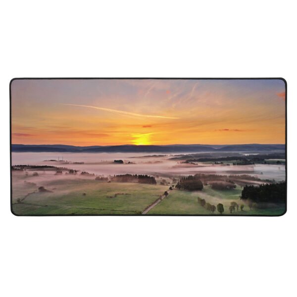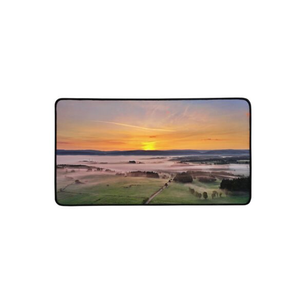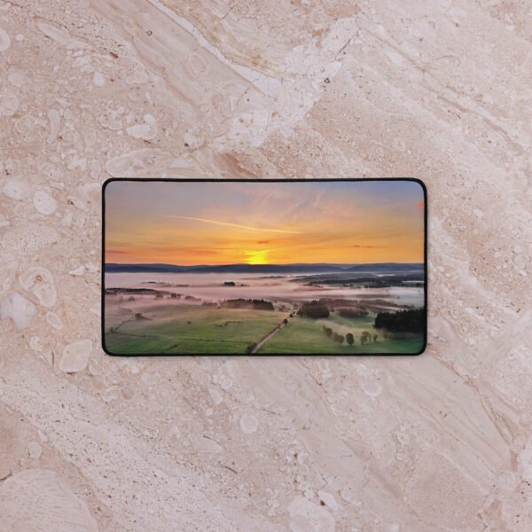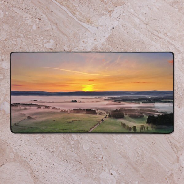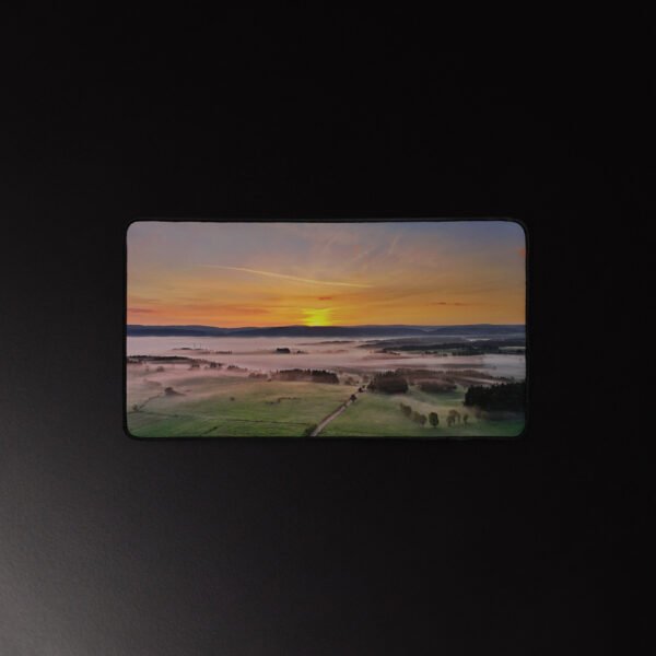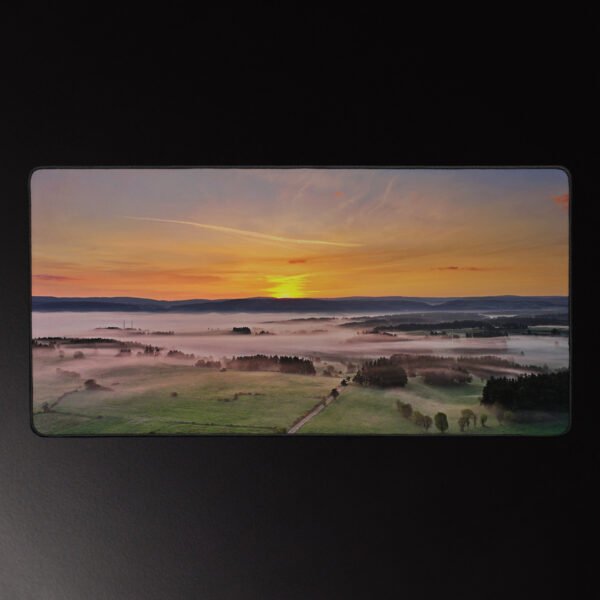 Brume légère, ciel rose et chemins qui s’éveillent : ce sous-main lisse et antidérapant capture l’aube mystique de Chabannes. Il protège votre bureau, stabilise clavier & souris et garde, sous les yeux, l’énergie douce des matins en Margeride. Visuel original Sensy Drone. Conservez un bureau parfait avec un tapis lisse et antidérapant conçu pour le jeu ou le travail. Que vous jouiez, que vous travailliez ou que vous essayiez simplement d’empêcher votre tasse à café de se renverser, ce sous-main est là pour vous. Ce support antidérapant maintient votre configuration stable et ses bords cousus assurent sa résistance aux effets du temps !
